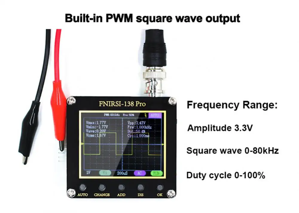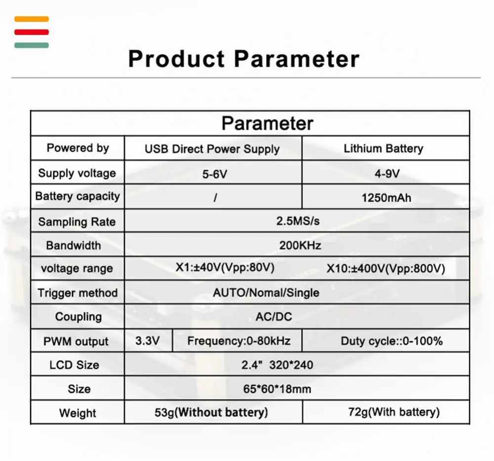 Цифровой карманный осциллограф 2.5MSA/s 200KHz аналоговая полоса пропускания Поддержка авто, 80KHz ШИМ и обновление прошивки