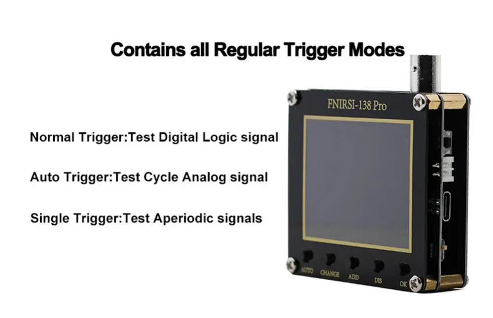 【Содержит все стандартные триггерные modes】обычный триггер: тестовый цифровой логический сигнал; Автоматический триггер: тестовый цикл аналогового сигнала; Один триггер: тестовые аперитиочные сигналы