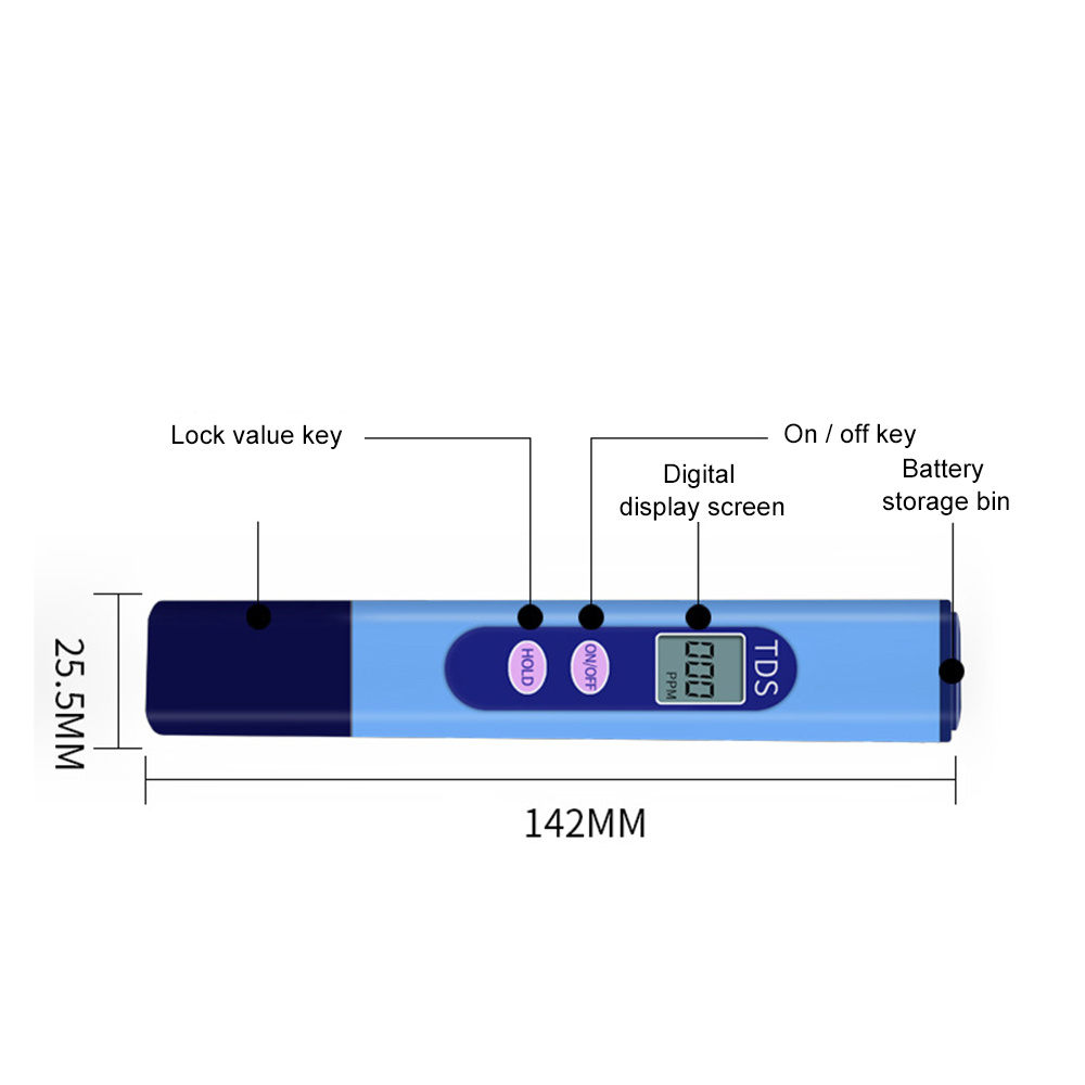 1. Двойной диапазон: 5 секунд знать качество воды, точность, быстрее. И цифровой ppm метр Диапазон: 0 ~ 9990 ppm, Точность: ± 2%.
