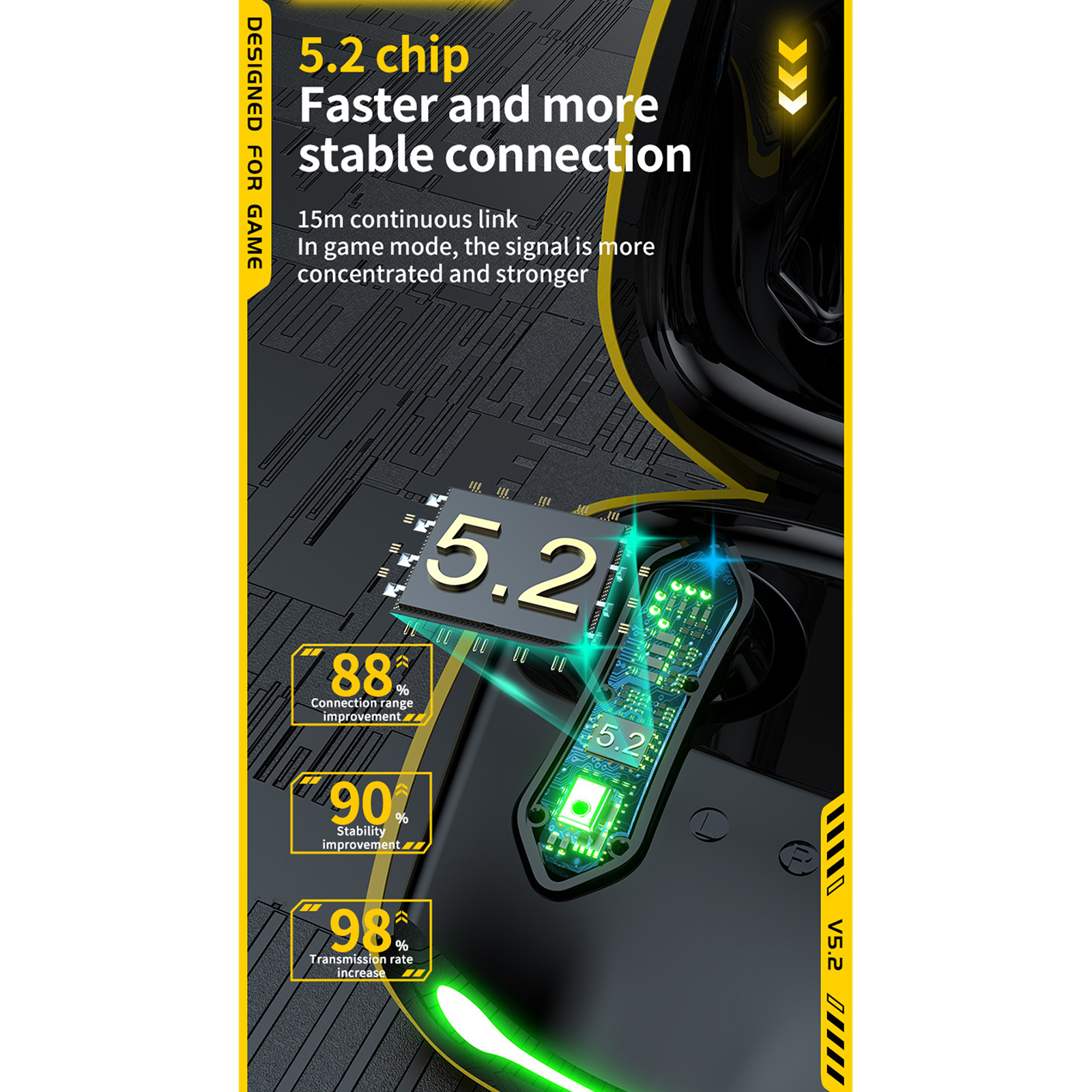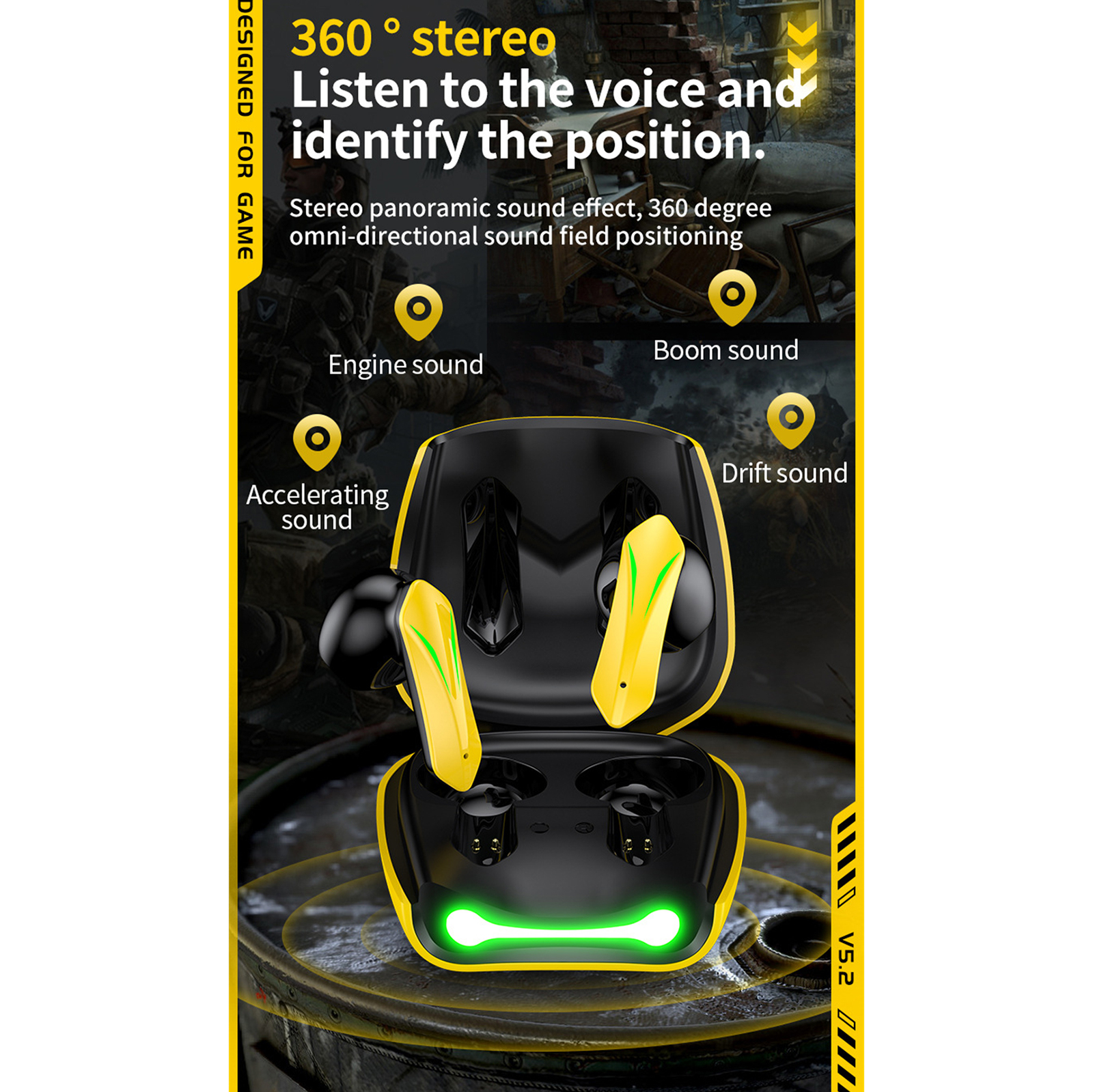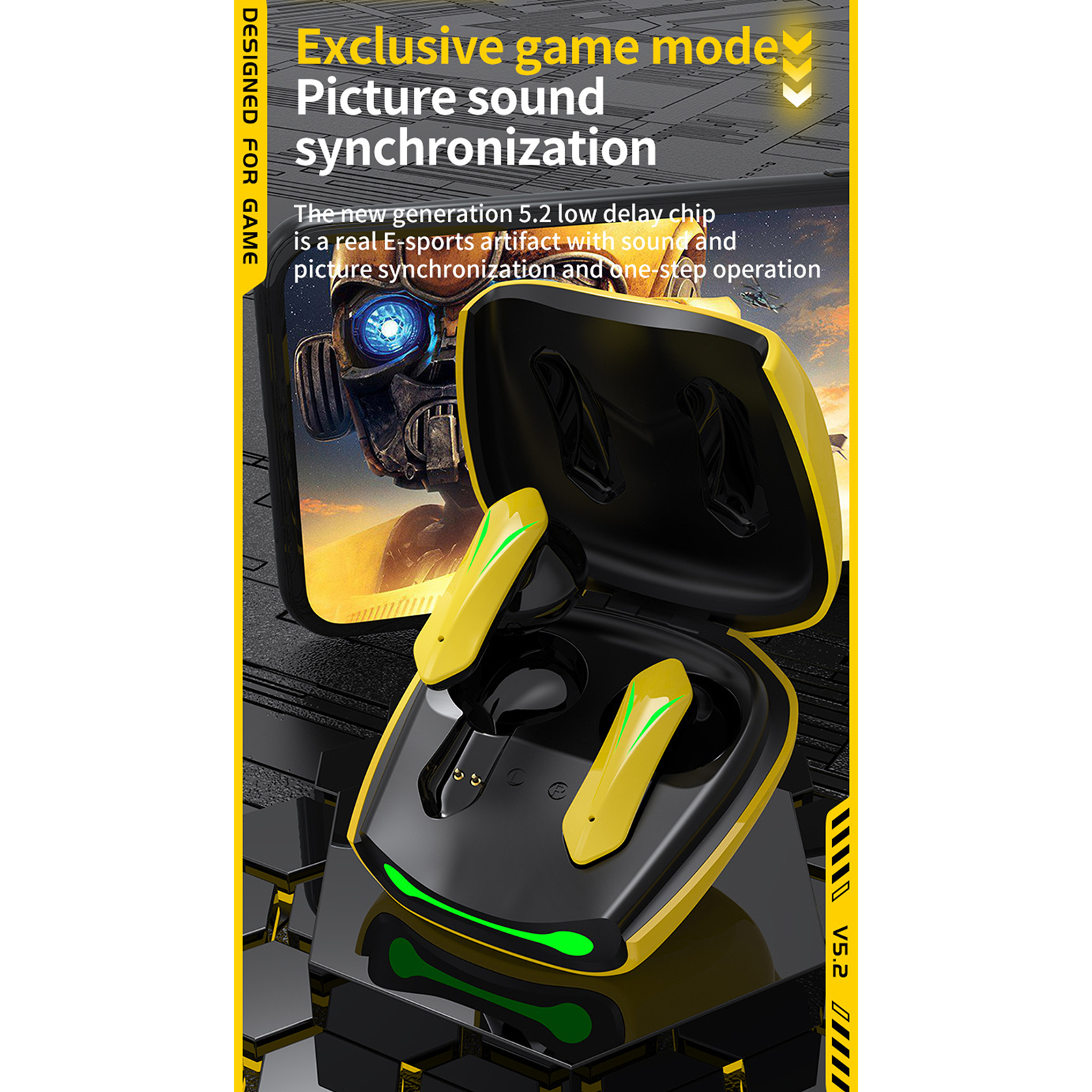 T33 Bluetooth-compatible 5.2 Headset Stereo Earbuds Dual-mode Low-latency Wireless Gaming Headphones With Microphone