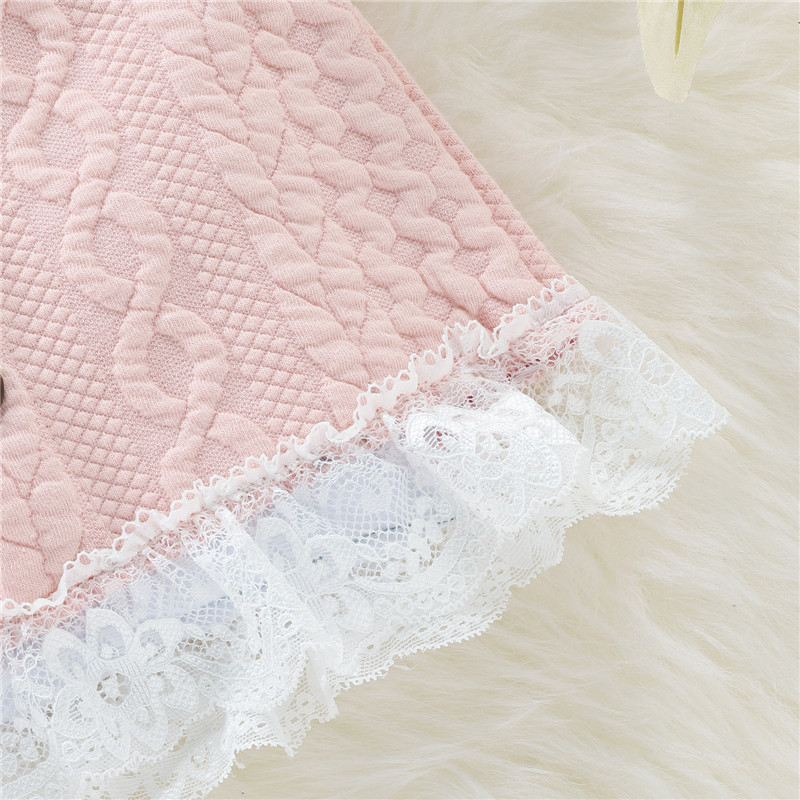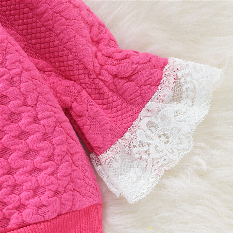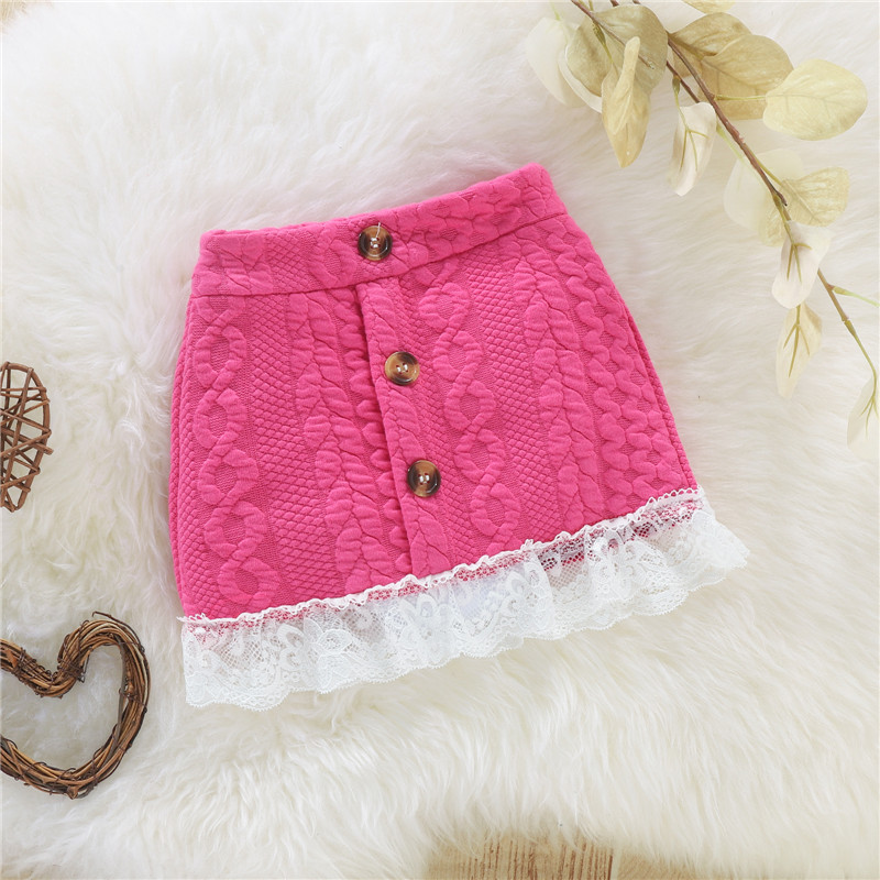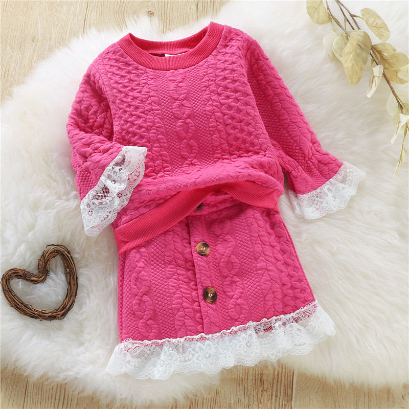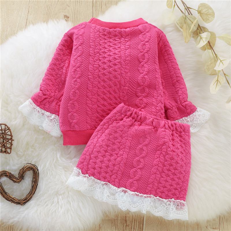 Свитер с длинными рукавами и круглым вырезом; Юбка с высокой талией; Кружевная отделка; Дизайн с сочетающимися цветами; Милый и стильный.