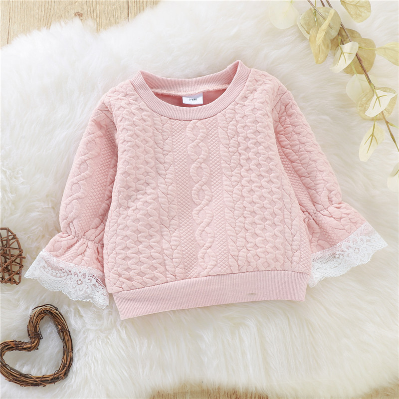 Детский кружевной свитер с круглым вырезом и длинными рукавами + юбка с высокой талией