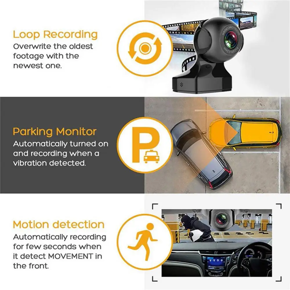 Функция: циклическая запись/Обнаружение движения/датчик гравитации/мониторинг парковки/широкий угол обзора 170 °