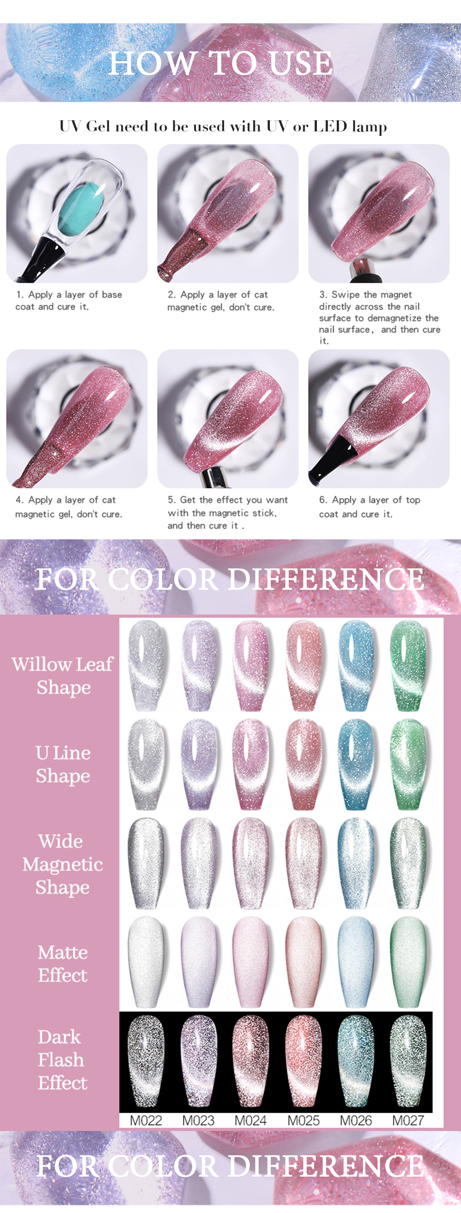 Step2. Нанесите первый слой магнитного геля Cat, и используйте магнитную палку, нажмите нужную форму, а затем вылечите ее.