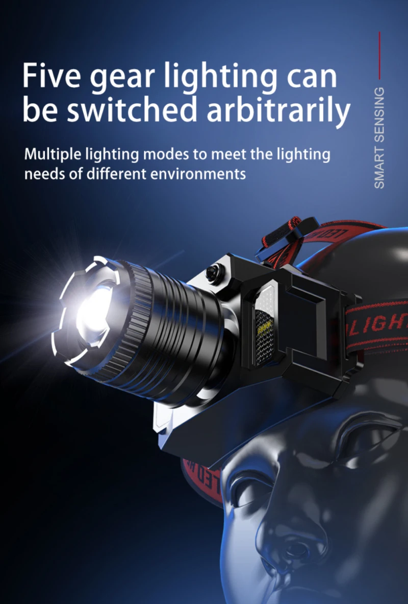 Светодиодный налобный фонарь с умным зондированием, рыболовная головка, светильник 2000 мА/ч с usb-зарядкой, водонепроницаемый, супер яркий кемпинговый светильник фонарь, флэш-светильник