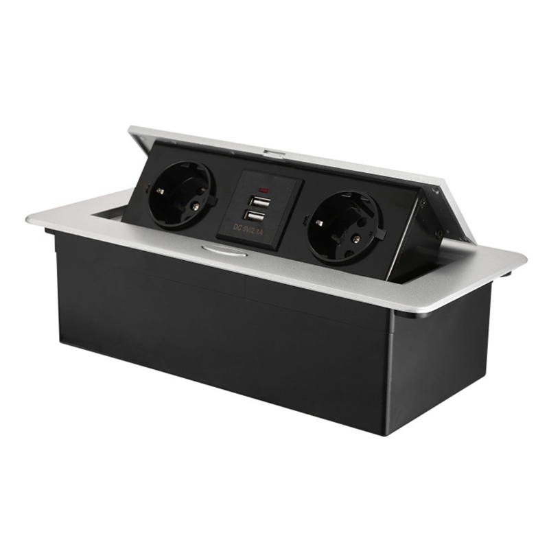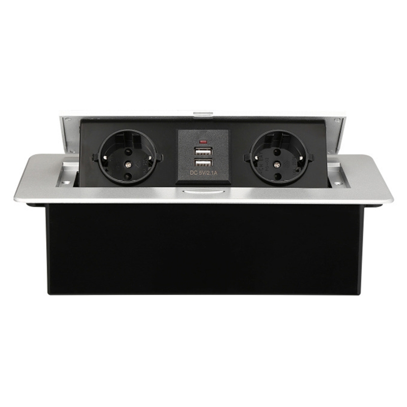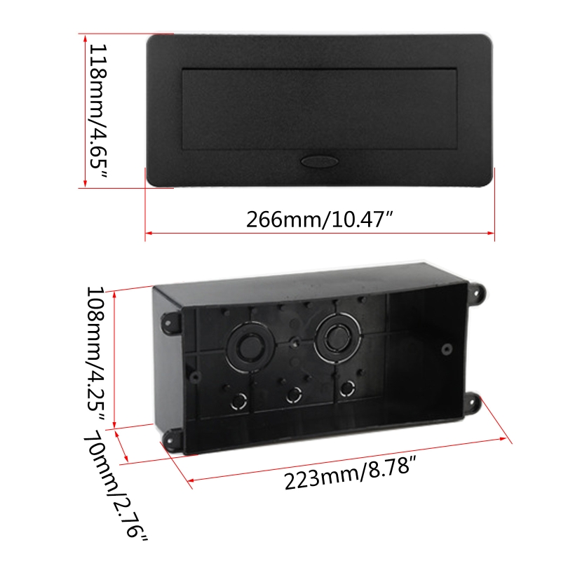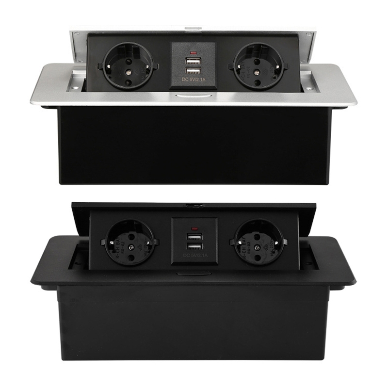 【Конфигурация 】: всплывающие розетки встроенные 2 вилки переменного тока и 2 порта USB, 220 В/16A; Порты USB: 5 В/2,1 А. (Размеры панели: 10,47x4,64x0,11 дюйма, размеры задней коробки: 8,77x4,25x2,75 дюйма)