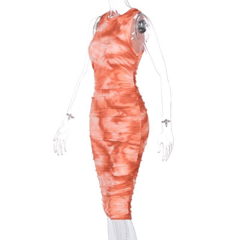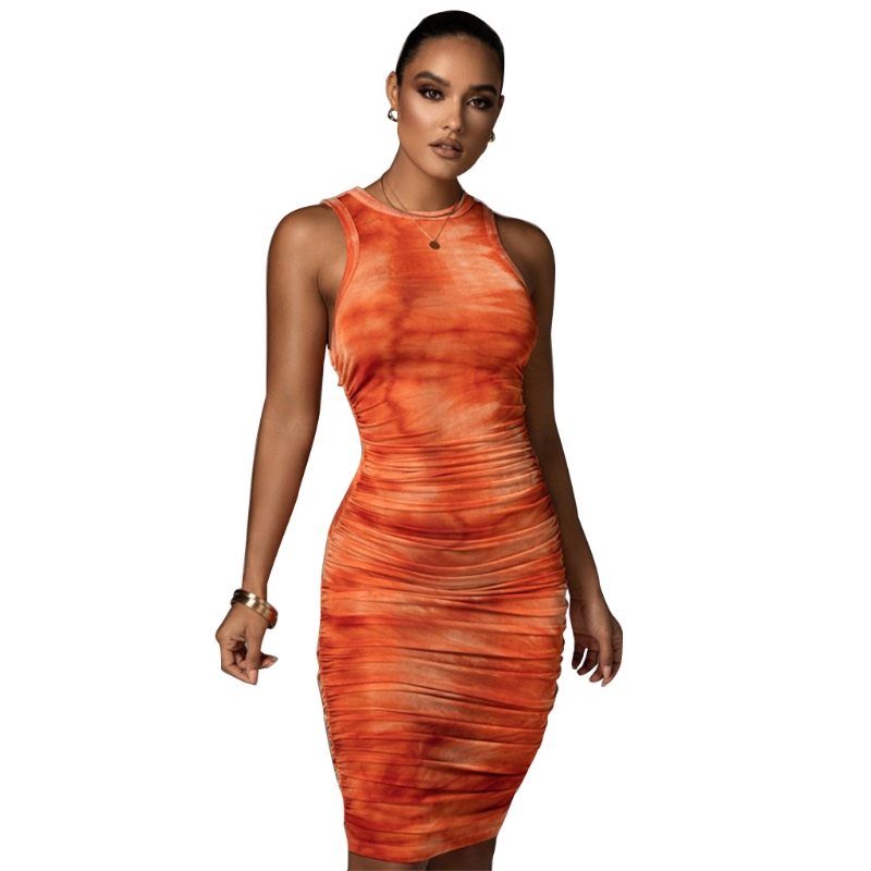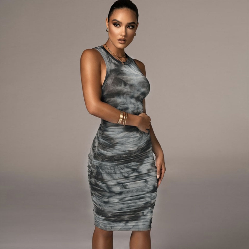 Женское облегающее длинное платье миди без рукавов с круглым вырезом и оборками, Сексуальные Плиссированные с рюшами, облегающие вечерние Клубные Платья До Колена