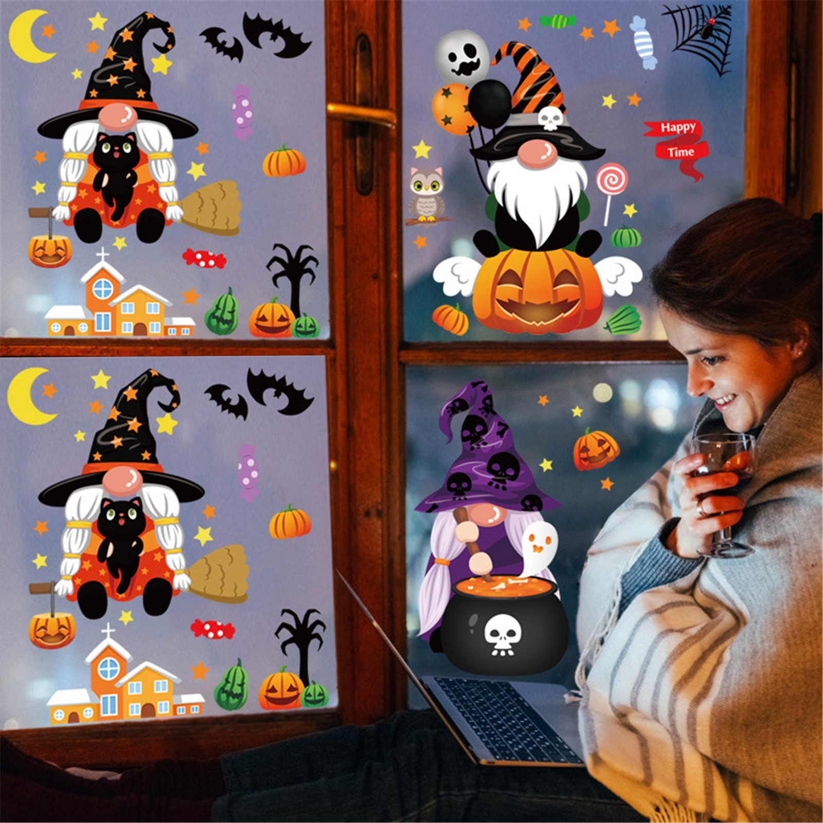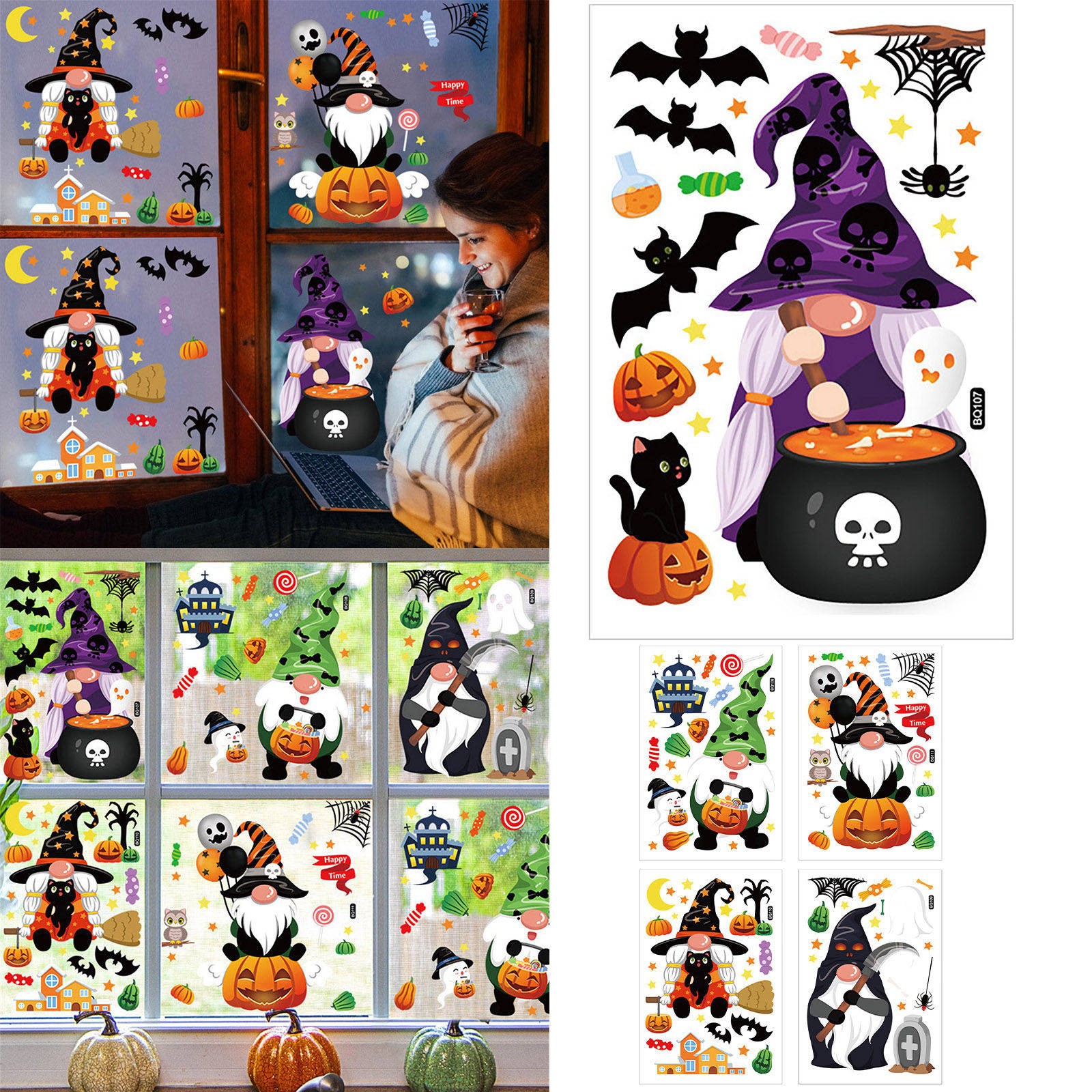 Прекрасное украшение: Эти Хэллоуин оконные наклейки идеально подходят для Хэллоуина вечерние украшения или других праздничных вечеринок, вы можете приклеить его на стену/окно/комнату/бар/кухню... Создайте идеальную атмосферу для вашего Хэллоуина, наслаждайтесь удовольствием с семьей и друзьями