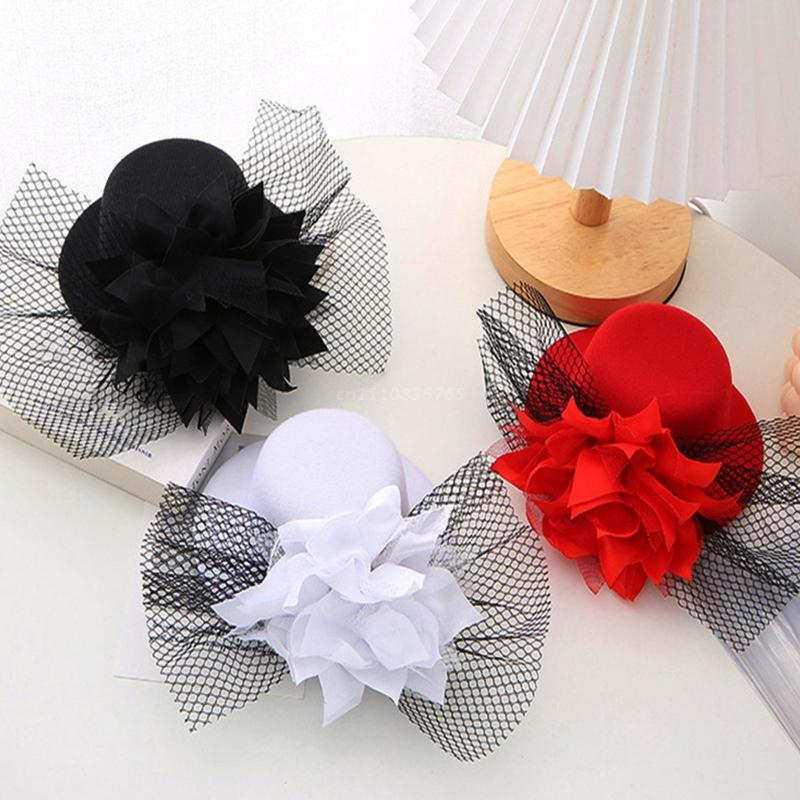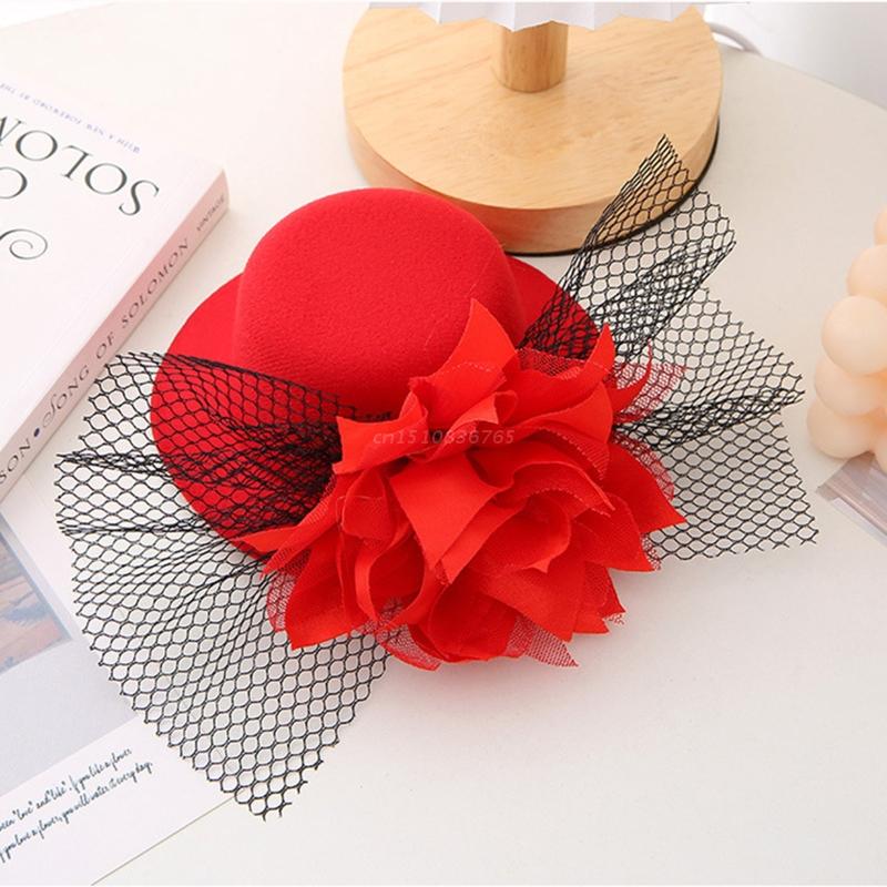 Детская шляпка-Вуалетка, сетчатые шапки, Детские аксессуары для волос, кепки для выступлений, заколки для волос, сетчатые цветы