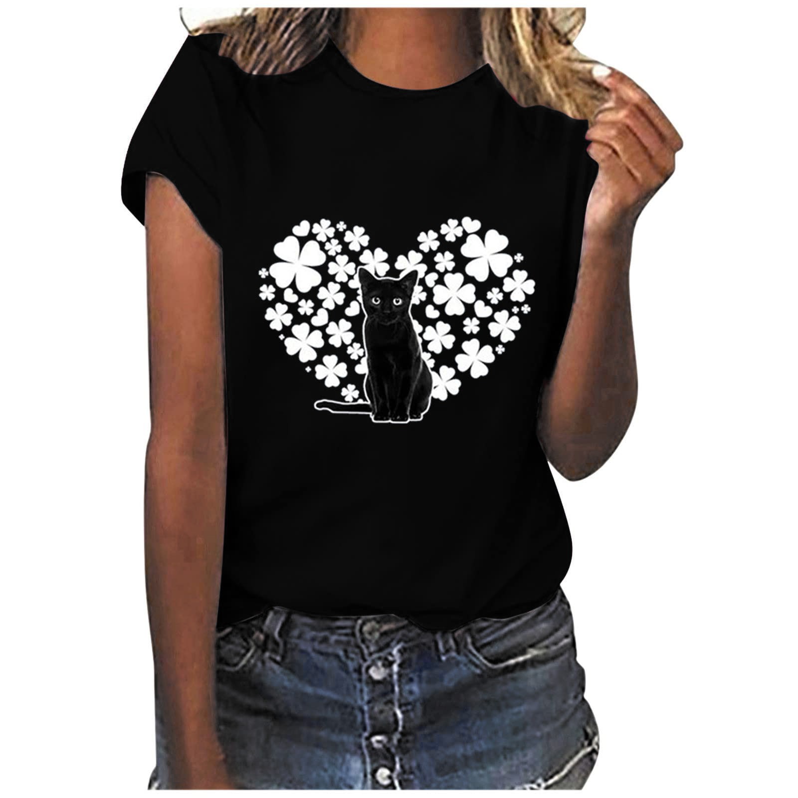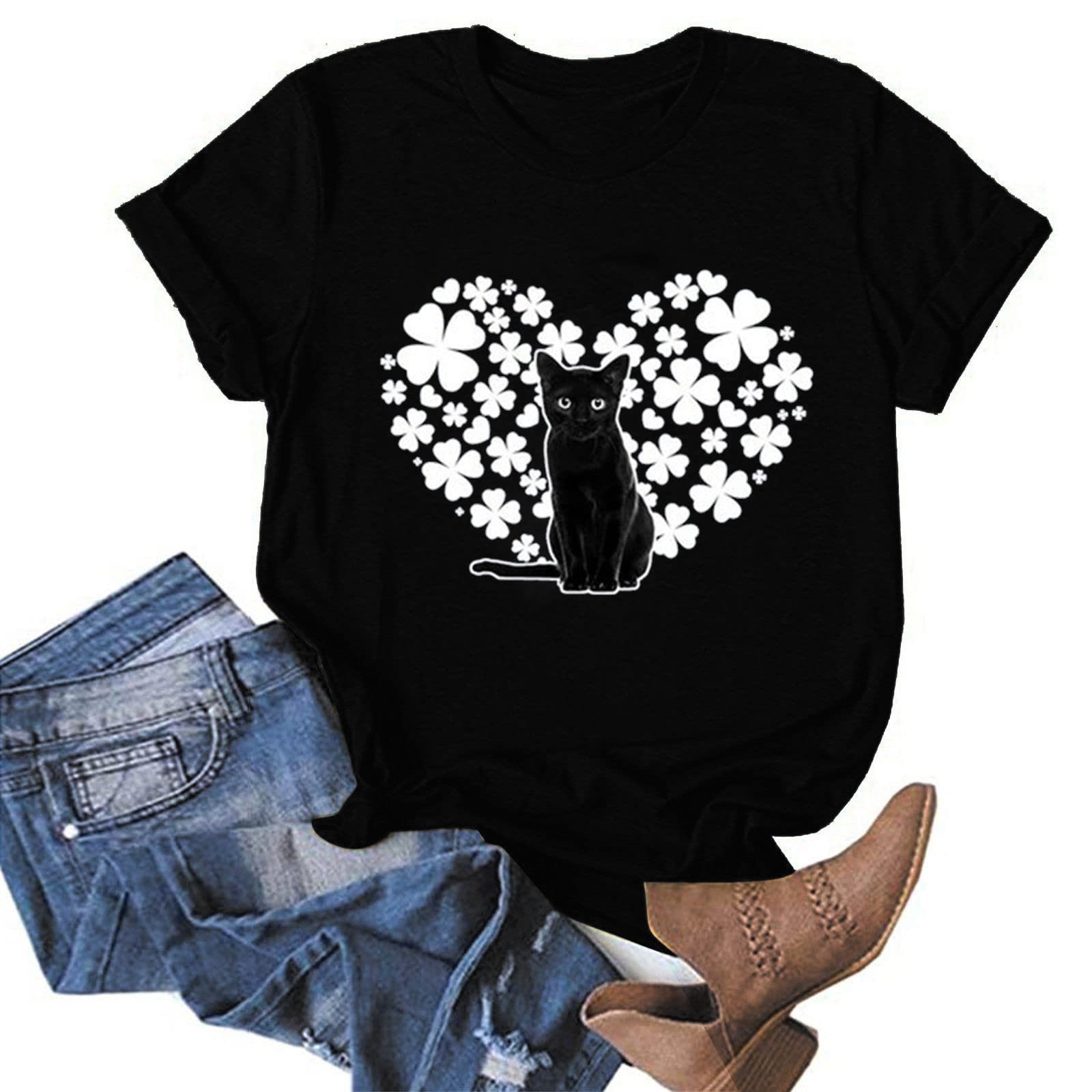 Женская модная летняя рубашка с круглым вырезом, Повседневная Свободная футболка с коротким рукавом и принтом