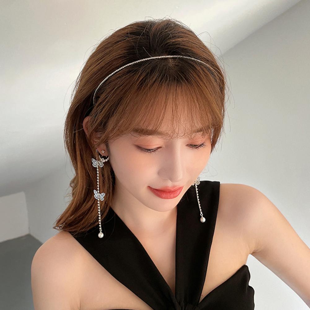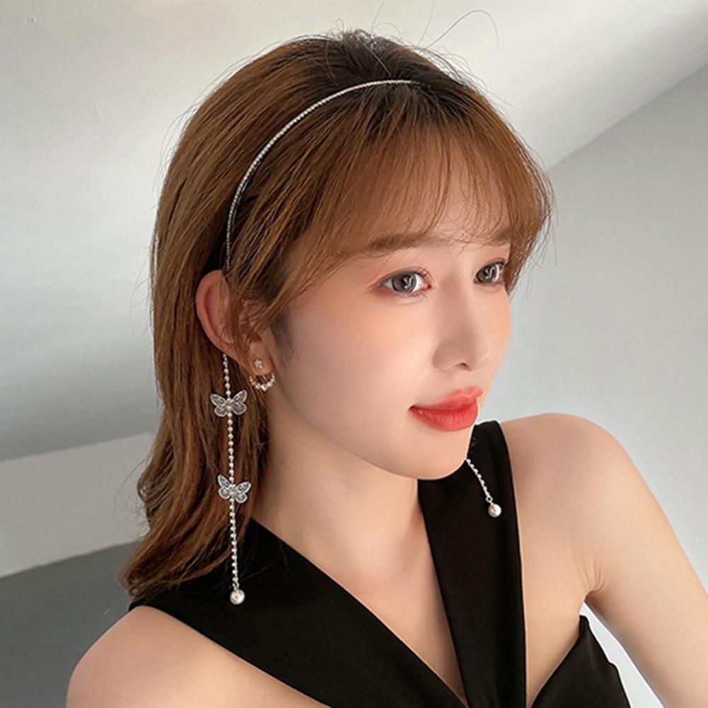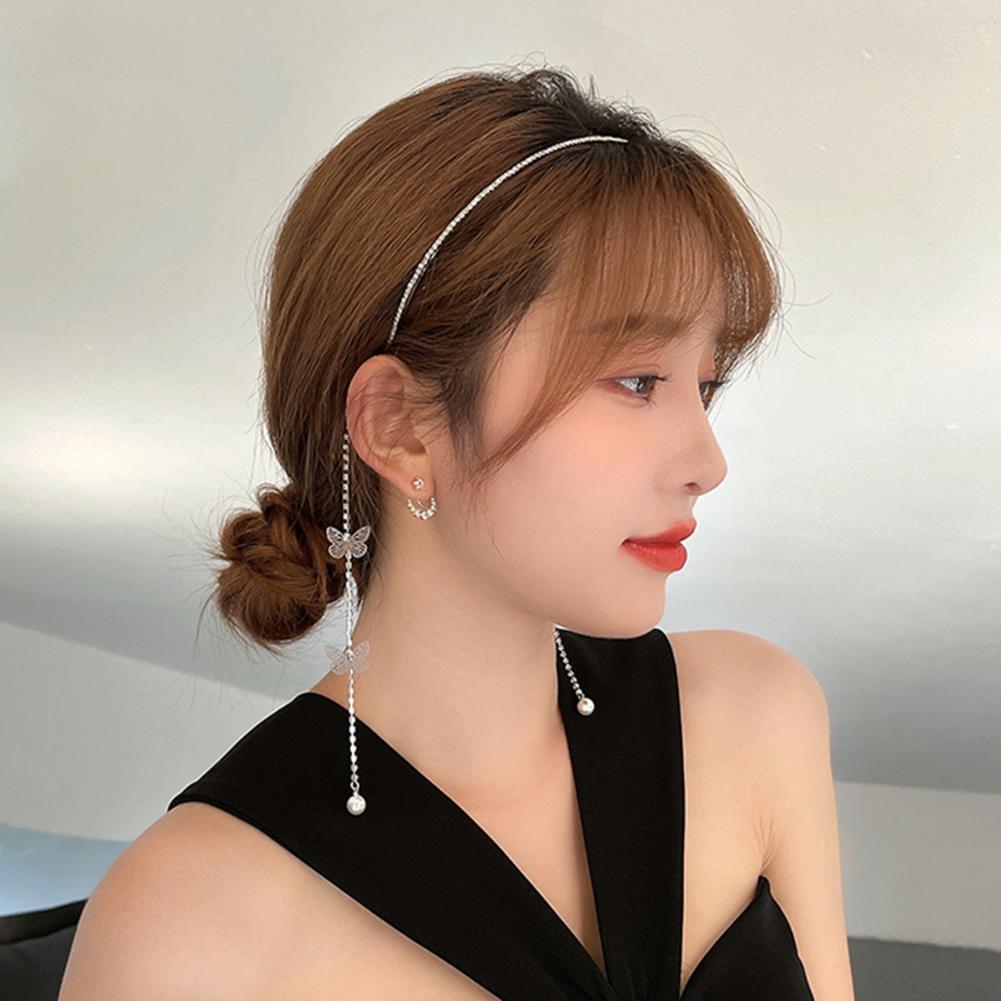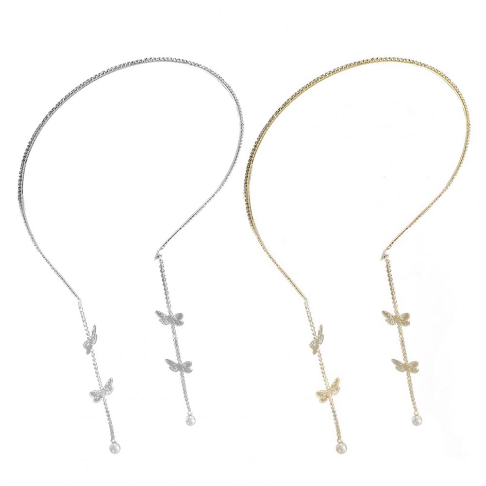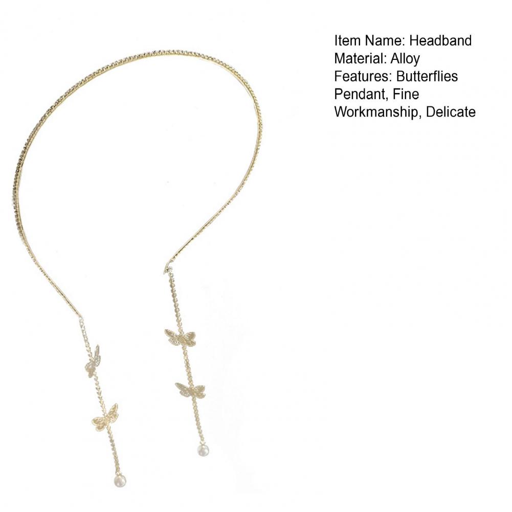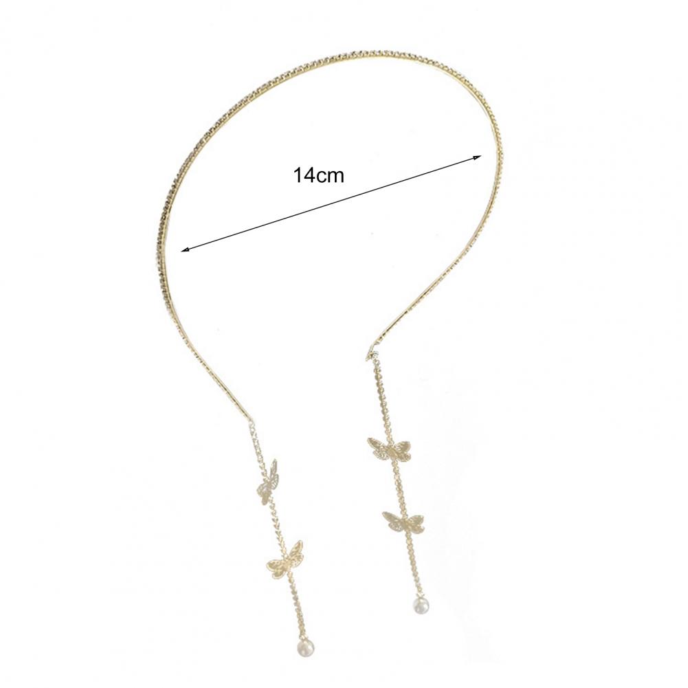 Повязка на голову, которая имеет блестящие стразы, искусственный жемчуг и кисточки с бабочками, может украшать волосы и сделать вас милым, элегантным и уникальным.