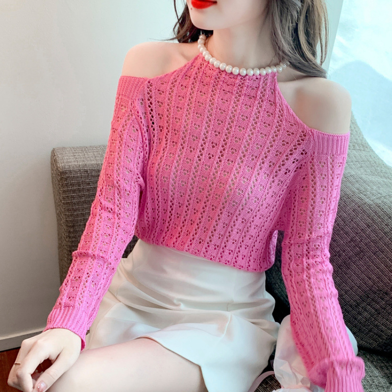 YT057 Женский Короткий стильный модный синий пушистый кашемировый тонкий пуловер