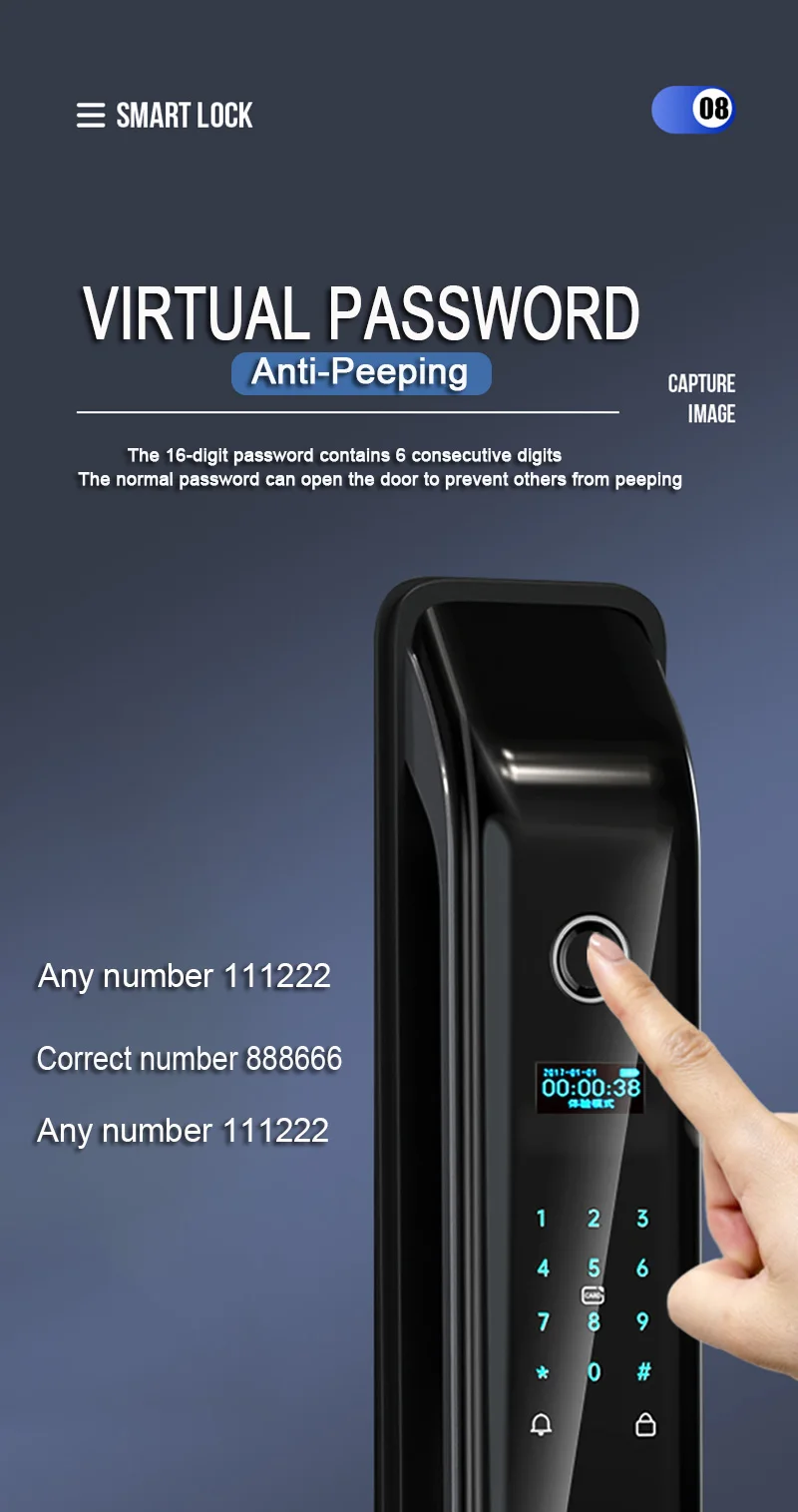 1. 5 способов разблокировки: отпечаток пальца, пароль, IC карта, механический ключ, приложение