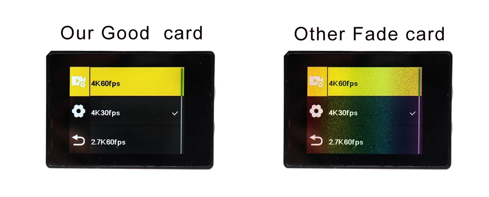Его можно использовать только с хорошей торговой маркой C10 U3 TF карты, высокая скорость TF карты для U3 настоятельно рекомендуется! Если нет, его нельзя установить на 4K и 1080P 60fps. Рекомендуем купить нашу tf-карту. Если 4k не может быть прочитана с другими картами, мы не обещаем послепродажное обслуживание, вызванное картами памяти