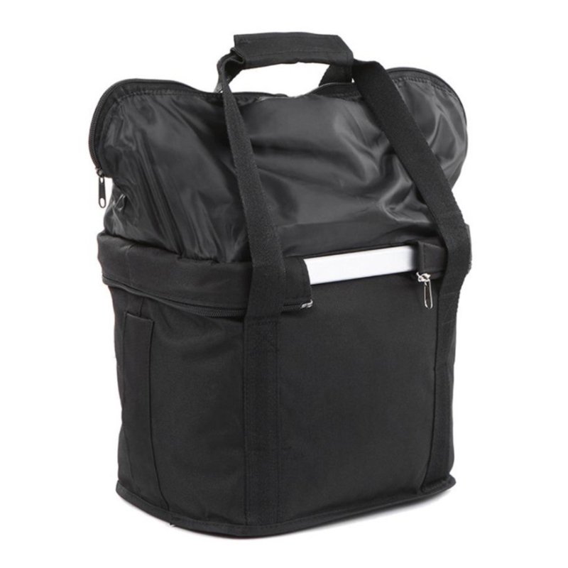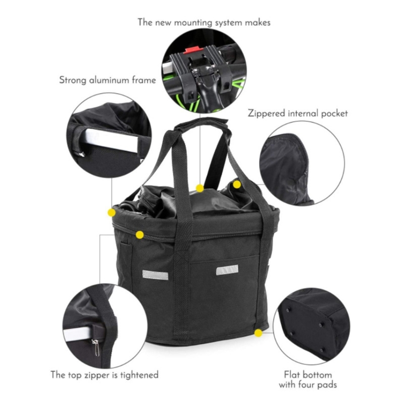 Уникальный дизайн: на верхней части этой складной велосипедной корзины есть застежка-молния, поэтому вам не придется беспокоиться о том, что предметы разваливаются, даже если дорога неровная. Подходит для большинства рулей.