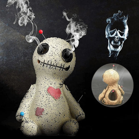 Кукла Вуду благовония горелка:Ручная скульптурная Смола вуду кукла благовония Горелка. Тонкая работа, прочная и долговечная. Конусная благовония находится за куклой вуду. Спереди это обычное украшение для дома, придающее загадочный цвет вашему дому.
