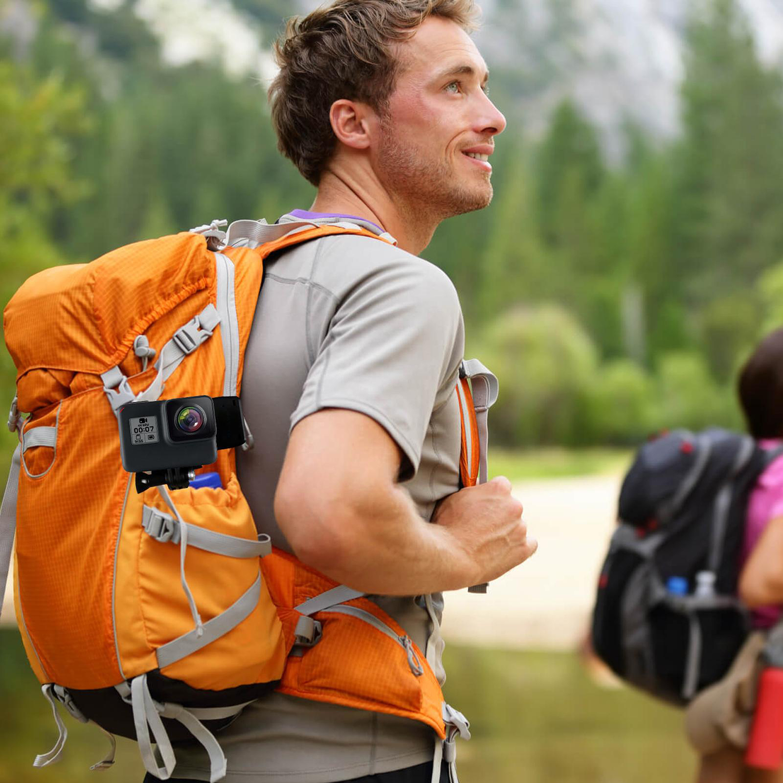 1. Многоугольное зажимное крепление и съемка: гибко фиксирует угол крепления адаптера рюкзака для многоугольного крепления. Легко крепится, чтобы запечатлеть уникальные углы съемки. Отлично подходит для путешествий, прогулок на открытом воздухе, серфинга, парашютного спорта, пеших прогулок, катания на лыжах, сноуборде, альпинизма, езды на велосипеде или других видов спорта на открытом воздухе, свободные руки.
