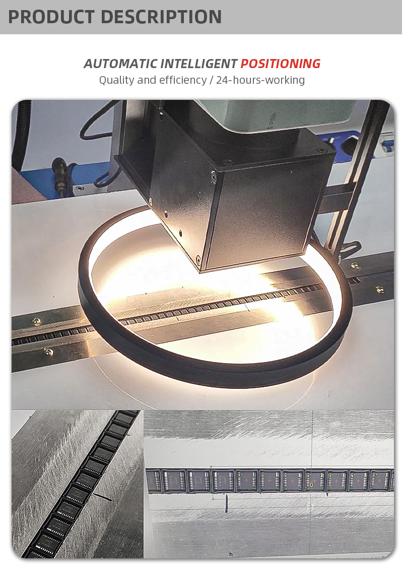 Дисплей продуктаВолоконно-лазерная маркировочная машина для визуального позиционированияАвтоматическое позиционирование и распознавание являются точными, которые могут быть размещены произвольно, экономя затраты на рабочую силу. Средняя почасовая мощность может достигать 1000-4000 или более. Требования к изделию: дно обрабатываемой поверхности должно быть в состоянии быть помещено плавно. Или партия продуктов, которые могут быть закреплены приспособлениями, с хорошим качеством луча, небольшим размером, быстрой скоростью, долгим сроком службы, гибкой и удобной установкой. Волоконный лазер, малый размер, низкое энергопотребление, отсутствие высоковольтного электричества, отсутствие огромной системы водяного охлаждения, высокое качество луча, близкий к идеальному пучку, управление выходом USB интерфейса, оптический гальванометр, высокая Частота повторения лазера, высокая скорость и отсутствие искажений. Оборудование имеет стабильную производительность, высокую точность позиционирования и может работать непрерывно в течение 24 часов.Сертификаты