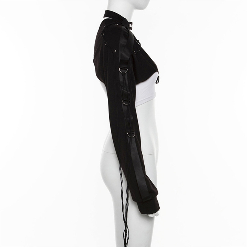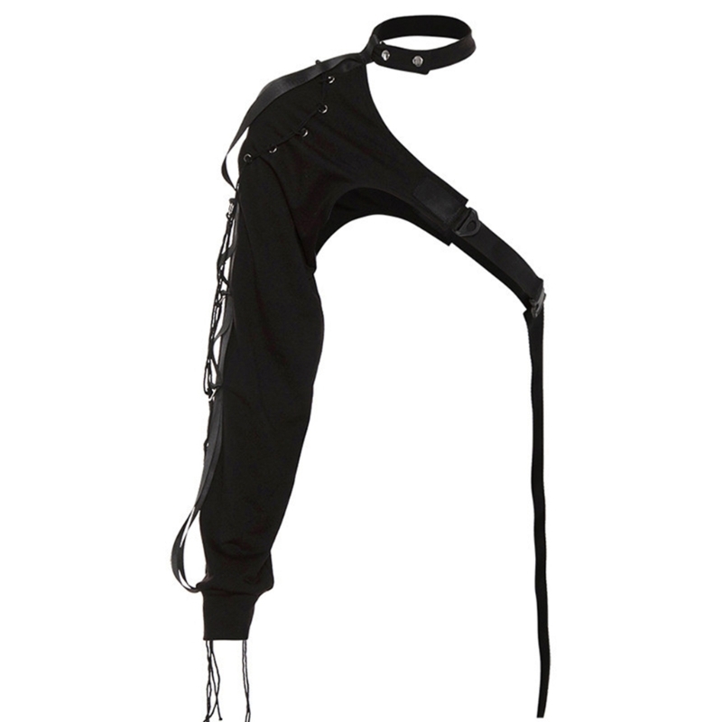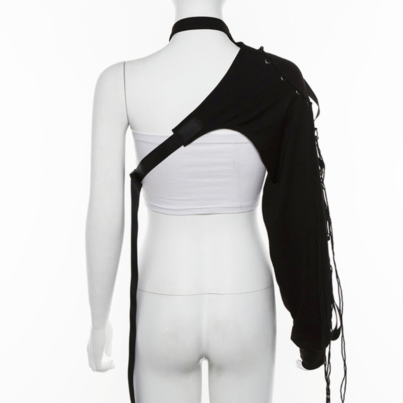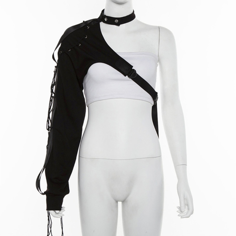 Женский Асимметричный укороченный топ на одно плечо с длинным рукавом и бретелькой через шею, готический панк вырез, бандаж, пряжка, накидка, болеро, одежда для вечеринок