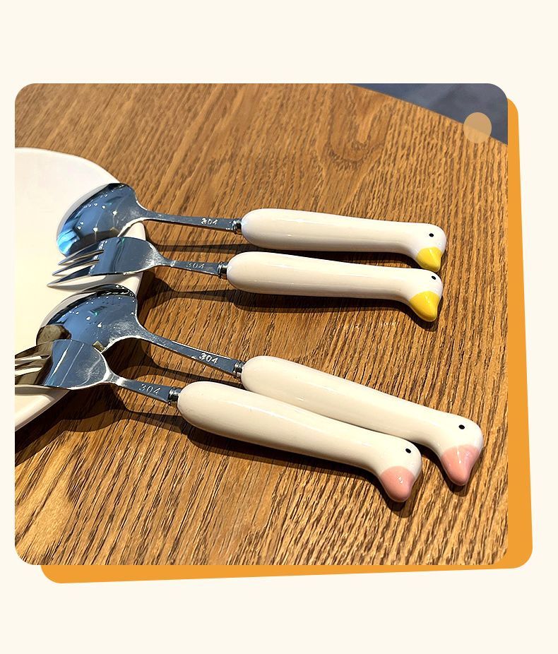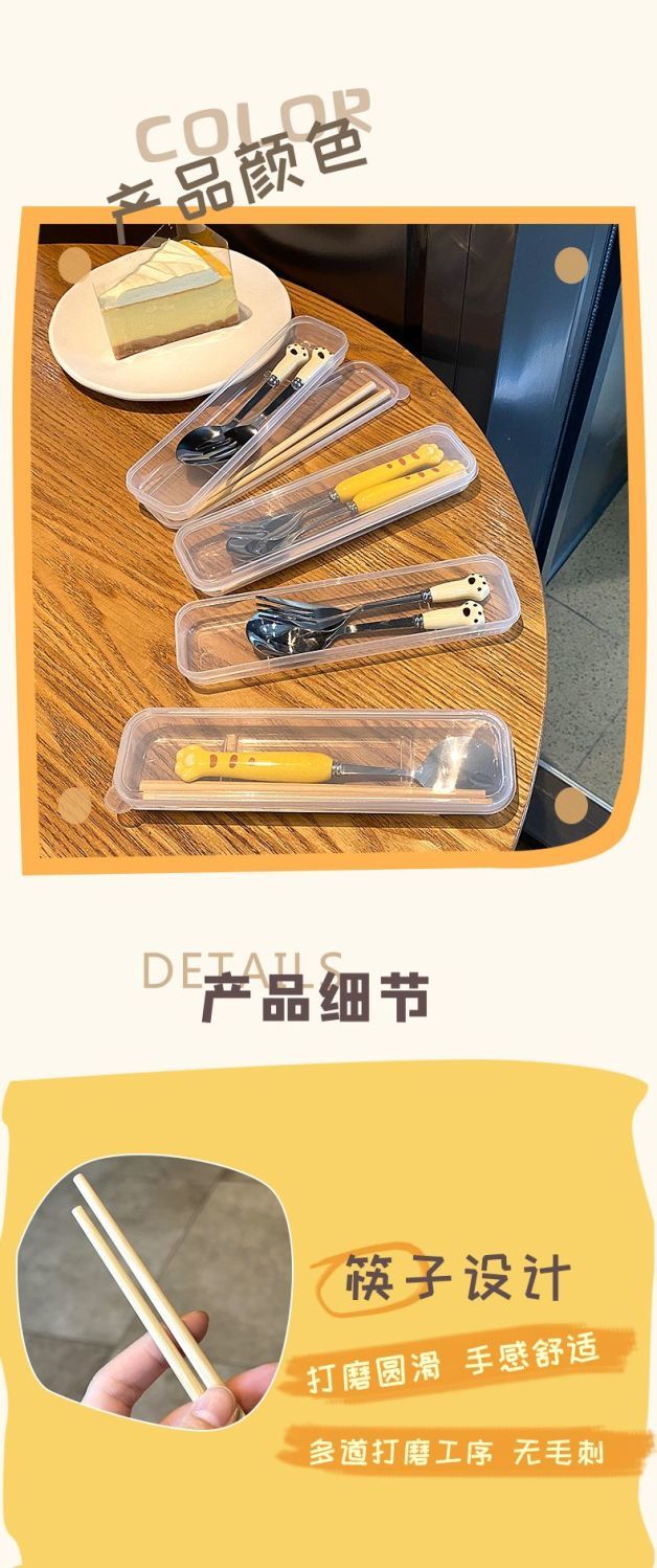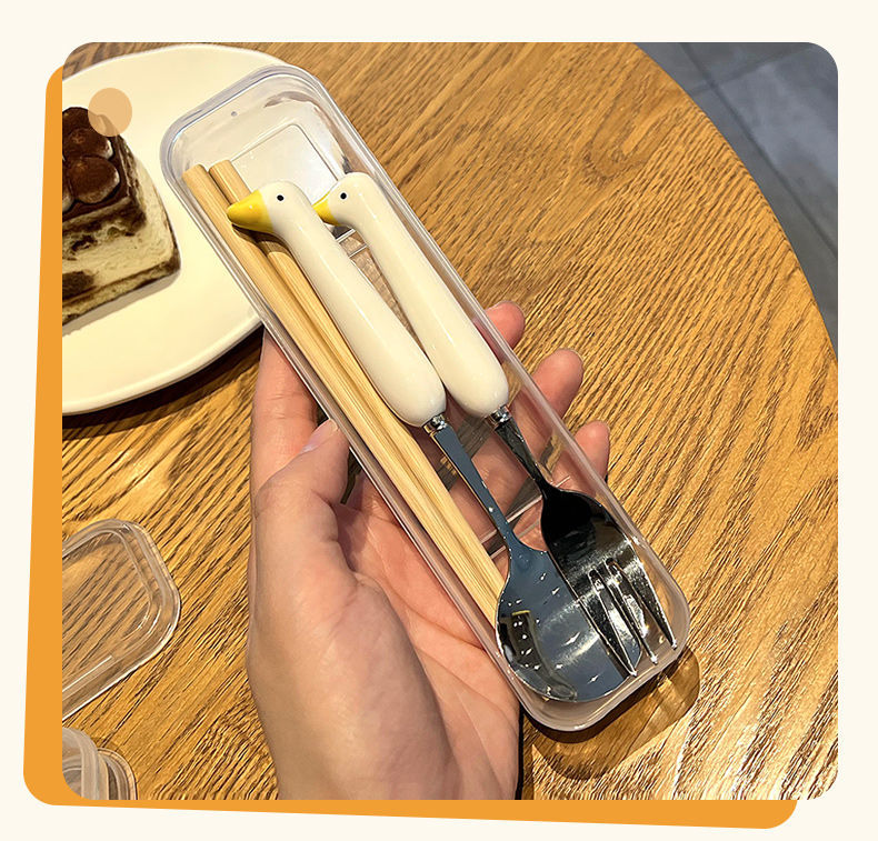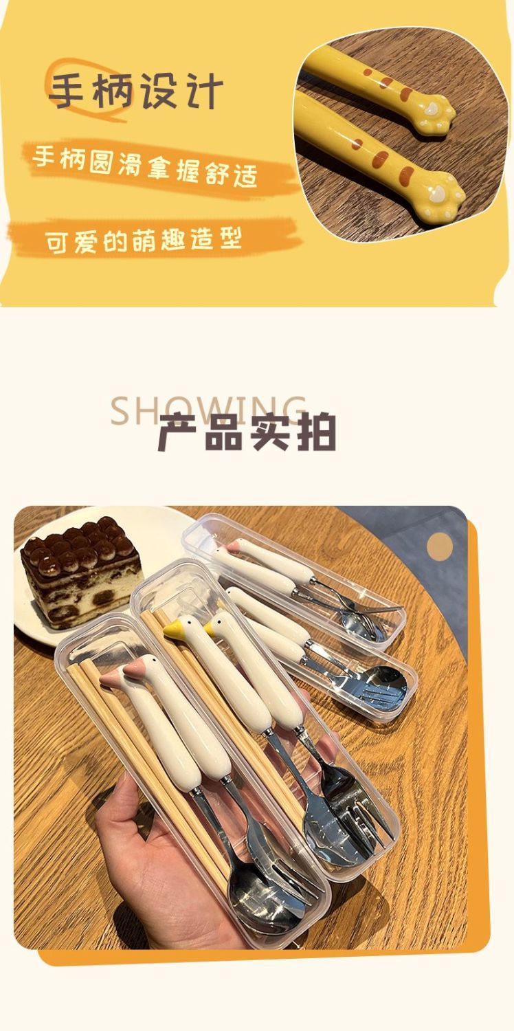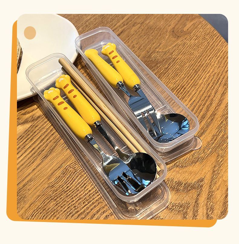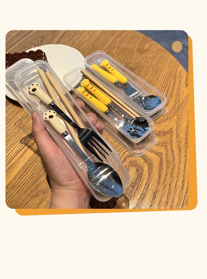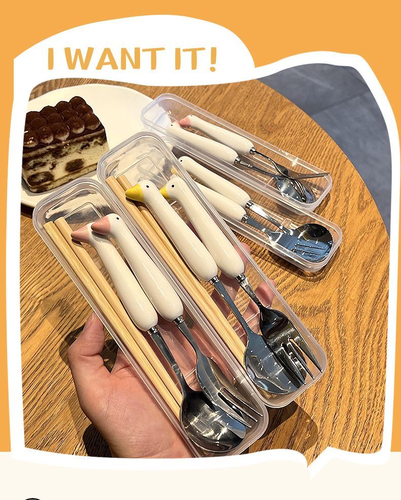 Ложка палочки вилка набор столовых приборов из трех предметов из нержавеющей стали, милые столовые приборы для студентов, Портативный Модный мультяшный набор посуды