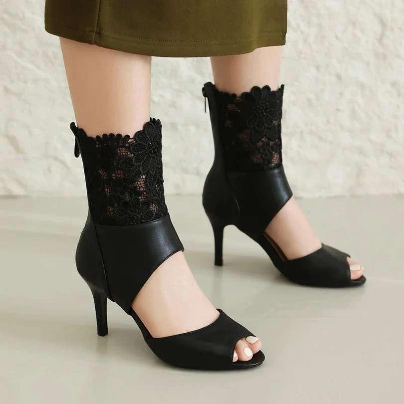Элегантные черные сандалии на высоком каблуке во французском стиле с толстой
