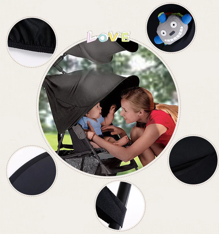 Детская коляска зонтик (Блокирует 99% УФ и UVB солнечных лучей.)