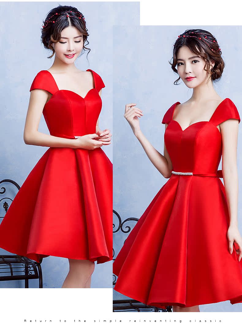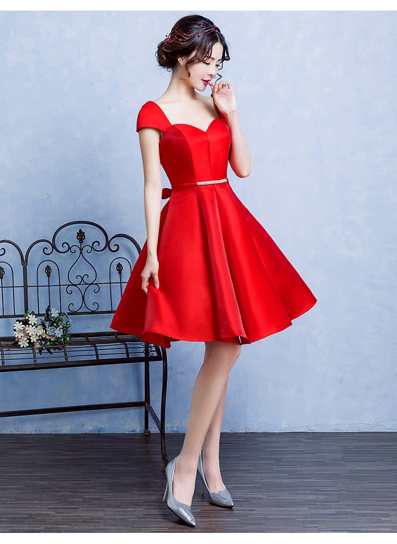 КРАСНЫЙ КОРОТКИЕ ВЕЧЕРНИЕ ПЛАТЬЯ 2017 Новое Прибытие Атласная Партия Платье Женщины Сладкий Вечернее Платье