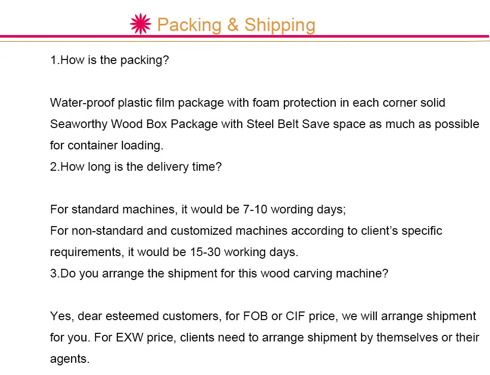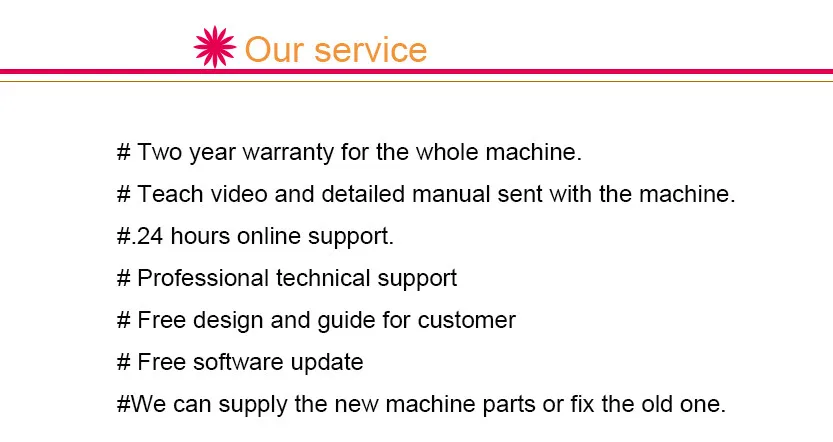 перед заказом, мы условии, каждые детали машины для вашей справки, или вы можете сказать нам ваше заготовки, наш техник будет рекомендовать наиболее подходящий машина для вас. кроме того, мы можем сделать образец в заранее для вас, чтобы проверить, если ваш чертеж предоставляется |
