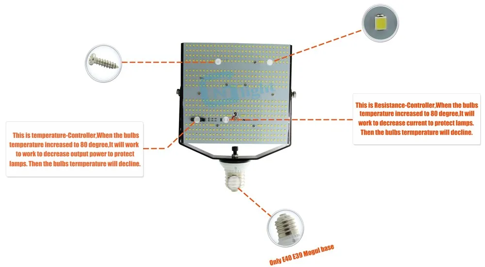 3.Регулировка 180 градусов, E40 E39 сокет, 80 ~ 200 Вт