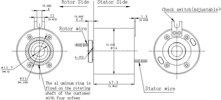 The SRT012-54-0X10 is a cap type slip ring, standard diameter 54mm, length 6-12, see drawings, Lu * 10A (signal)