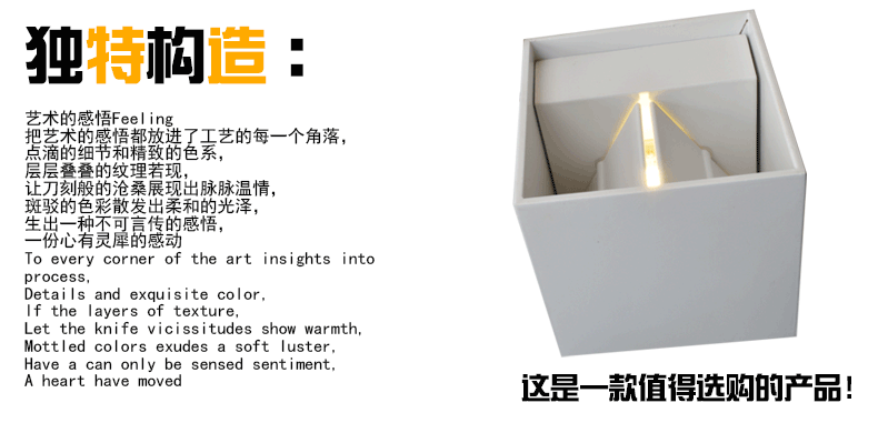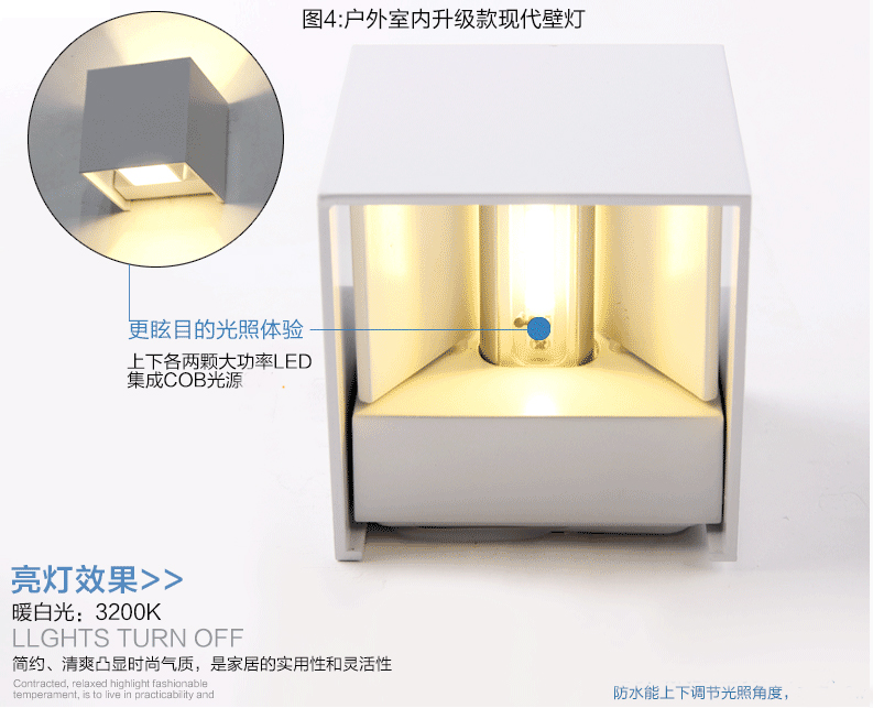 Светящиеся вверх и вниз, есть два переключателя внутри, чтобы быть вращающимся для регулировки диапазона облучения, максимальный угол луча до 100 градусов.