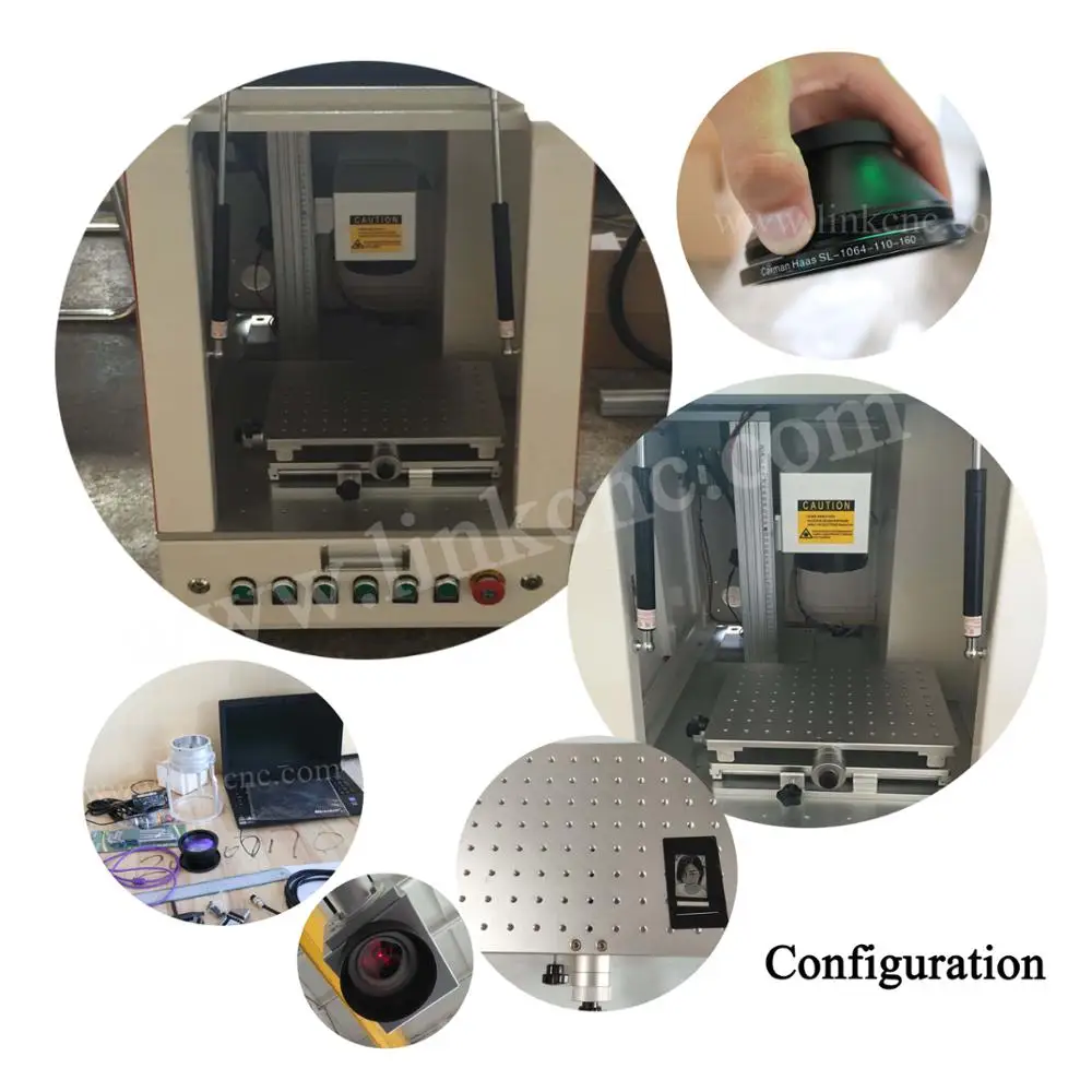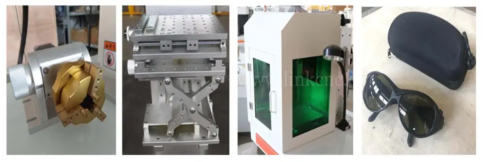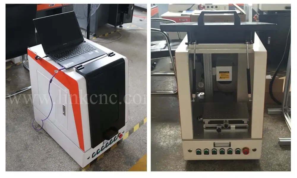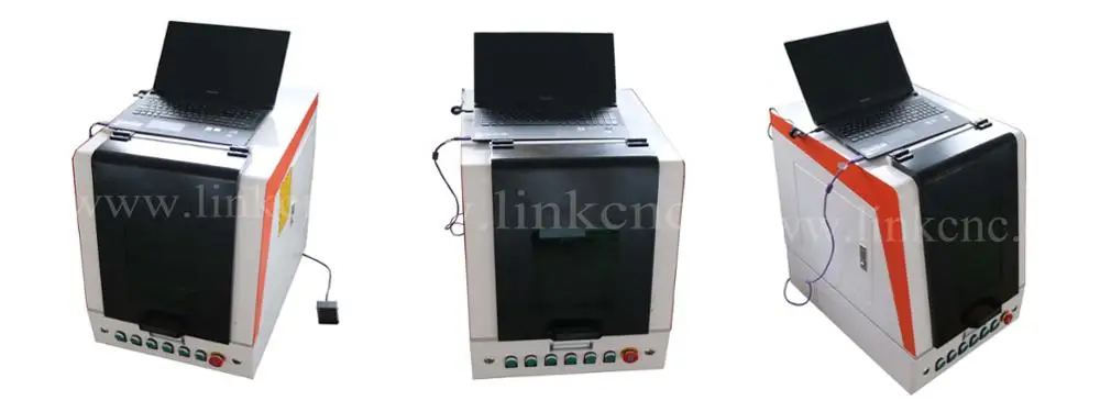 1. Portable and more beautiful Compared with traditional type cnc laser fiber marking machines, this new type machine has smaller size and more beautiful appearance, alll machine parts are covered by the shell, giving a more simple impression. 2. More "Green" All the machine parts are covering, so the laser can be cut off, so it is the most suitable type for the countries with environment requiement. 3. Multi-button togther with foot switch control This new type machine has seven buttons to control the processing of the machine, it is more convenient compared with traditional fiber marking machines' four button design. It is togther with the foot switch, which can save much more time and become easier operation. 4. Excellent beam quality The optical fiber laser is the medium mixed yb double-clad fiber, resonant cavity length, so the beam quality is very good, M2 value is 1.2-1.5, the output flare diameter can achieve 10 microns. 5. Customized. Optional of the machine is including rotary (used for marking roll material-ring/bottle), up-down table, working light and protective glasses or change the machine parts if you want. |