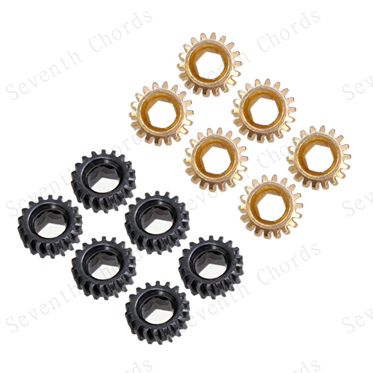 Цвет: золотой и черныйМатериалы: железоШестерня с шестигранным отверстиемРазмер: как на фотоПередаточное отношение: 1:18Посылка включает в себя:12 гитарных передач