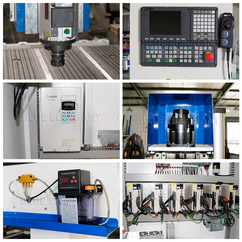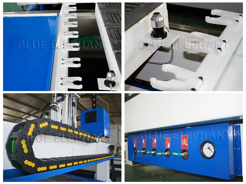 Brand NameBlue ElephantModel NumberELE1325ATC-4ConditionNewCNC or NotCNCMeasurement unit100000015Each pack1Voltage380V, 3Phase, 60Hz (Optional:220v)Power(W)13.5kwDimension(L*W*H)1300*2500*500mm Working SizeWeight1700kgCertificationCE ISO9001 SGS BV TUV ISO9000Warranty12 MonthsAfter-sales Service ProvidedEngineers available to service machinery overseasLinear Rail#25 Taiwan HIWIN Linear Square GuideSpindleItaly HSD Air Cooling SpindleSpindle power9kw