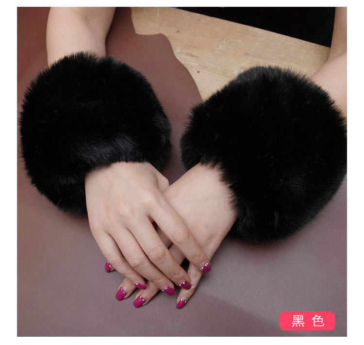 Зимние уплотненные кольца из искусственного кроличьего меха с длинным рукавом, украшения из меха ручной работы, милые теплые нарукавники из искусственного кроличьего меха, меховые манжеты