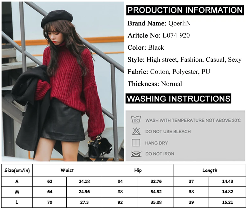 QoerliN Осень Зима Высокая талия черная PU юбка женская мода А-силуэт молния кожаная юбка миди Saia Faldas Mujer Plus Размер S-L![size chart]()