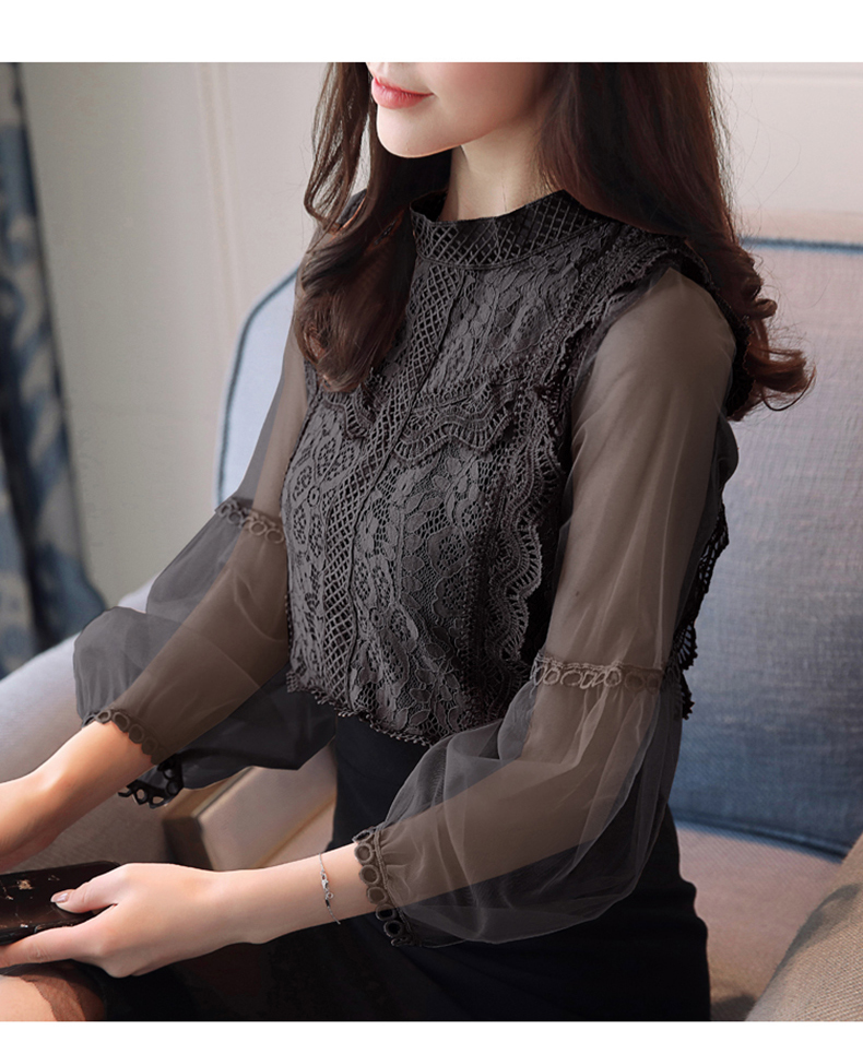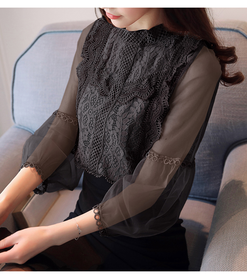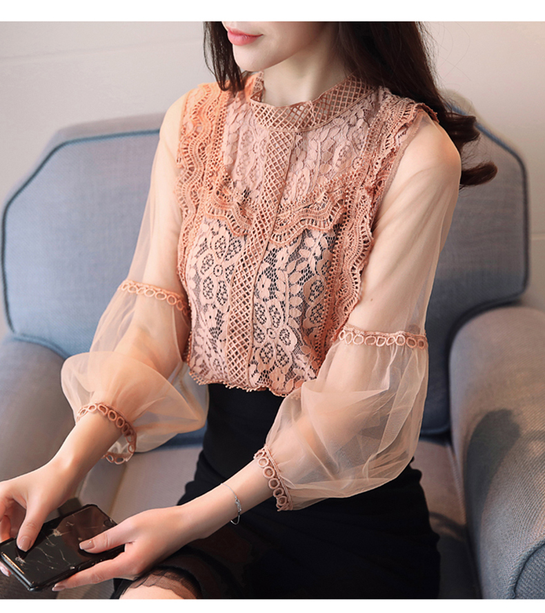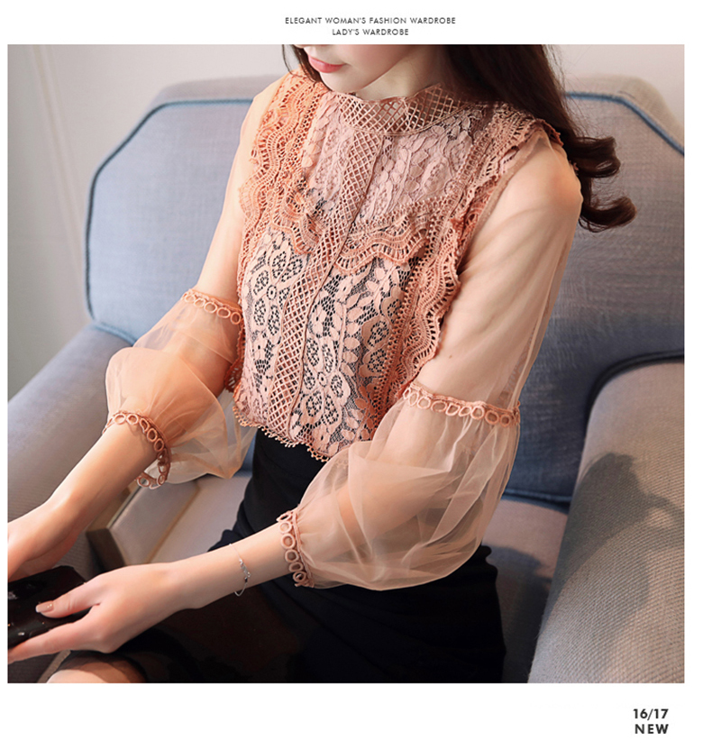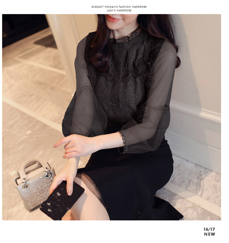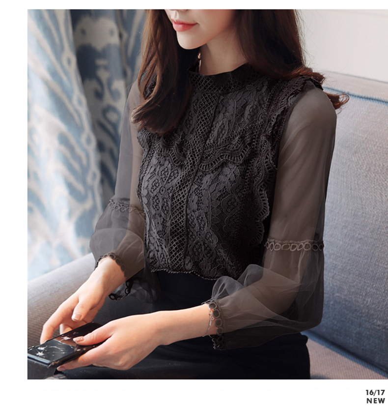 JLZXSY 2018 New Spring Elegant Women Chiffon Blouse Lace Hollow Long Sleeve Shirts Tops With
