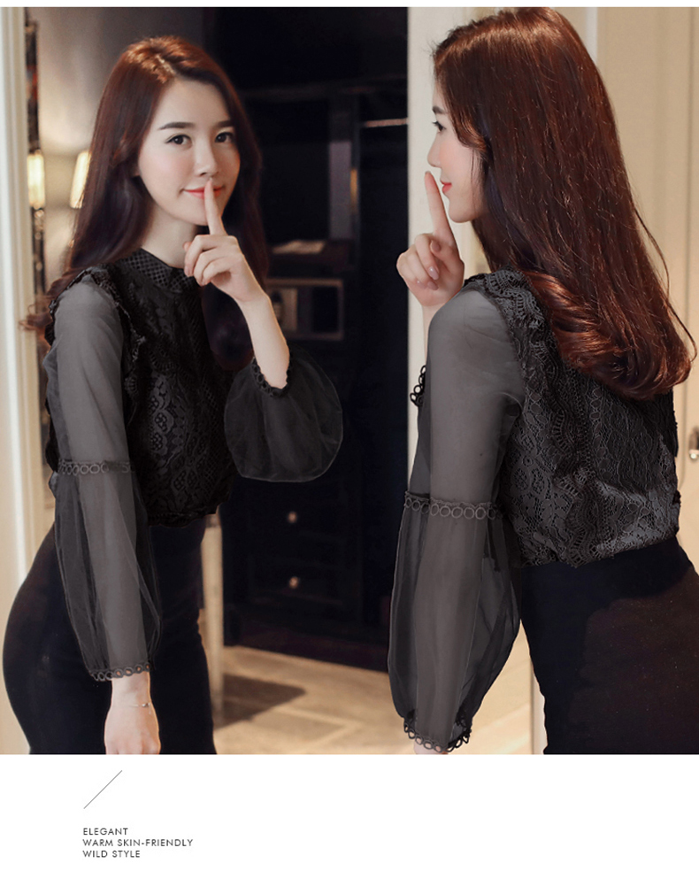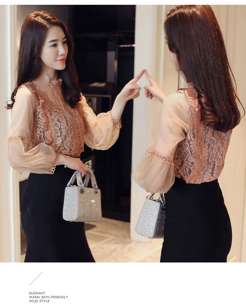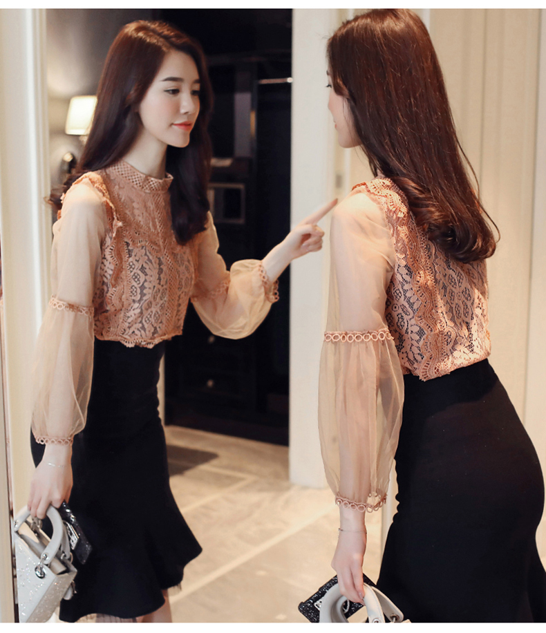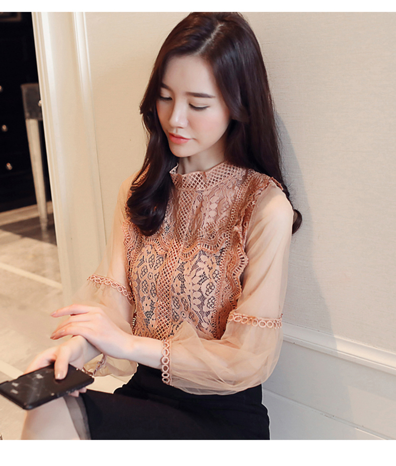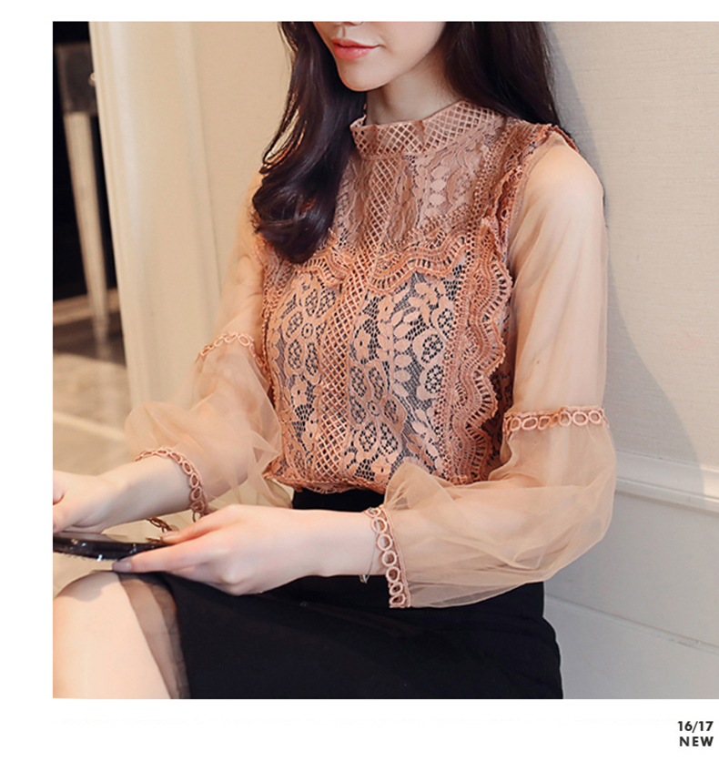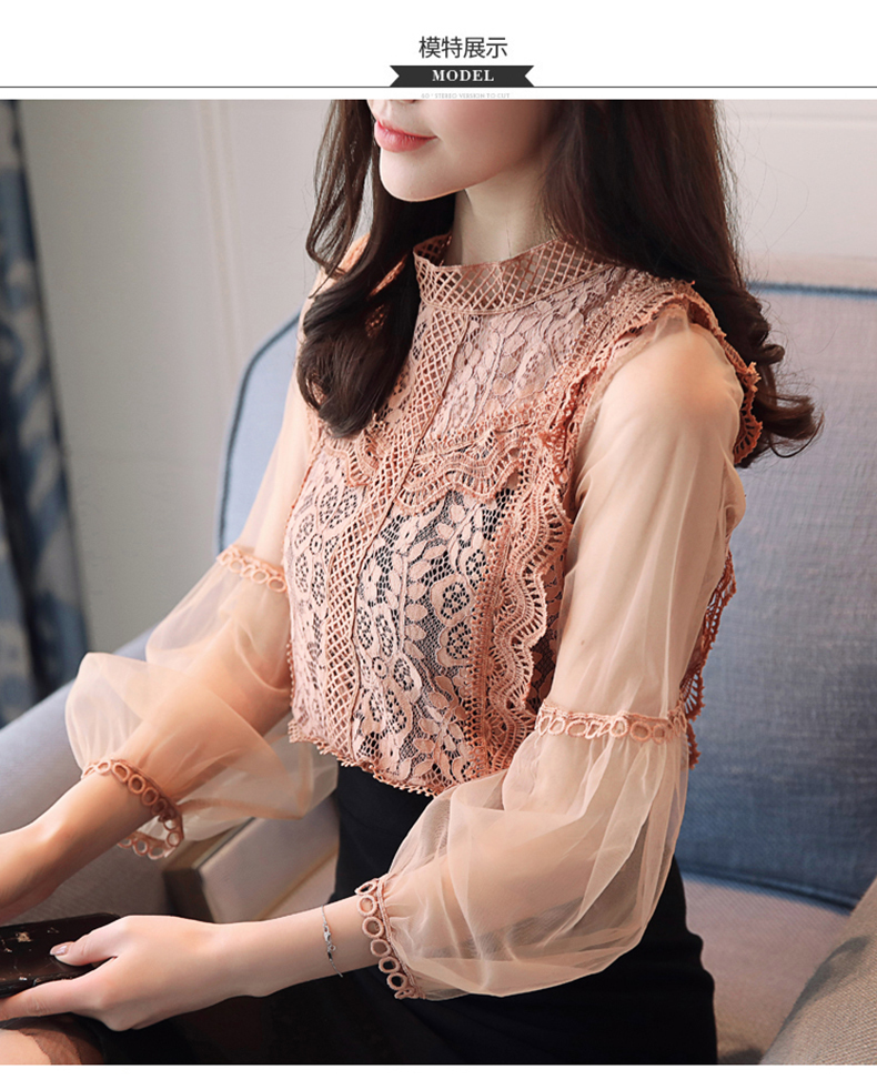 JLZXSY 2018 New Spring Elegant Women Chiffon Blouse Lace Hollow Long Sleeve Shirts Tops With