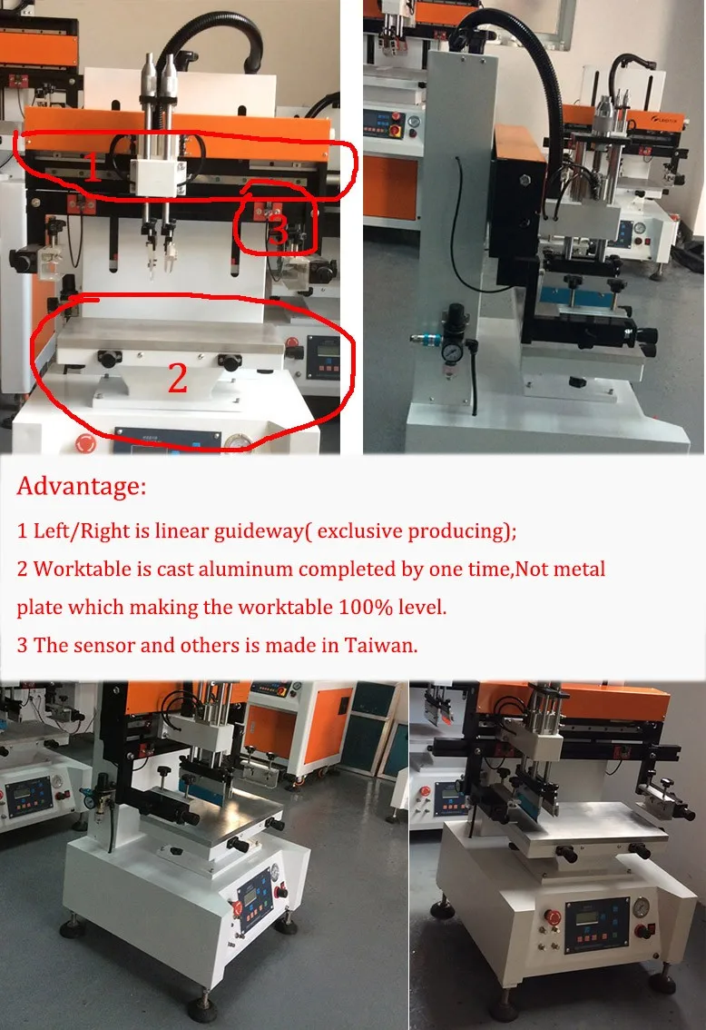 2 микрокомпьютера контролируют степень автоматизации, адаптируя пневматические компоненты и надежную производительность. Без шума компактный, литой алюминиевой полировки платен, обратно к скребок для масляной краски двойной выбор режима, для печати любых требований;