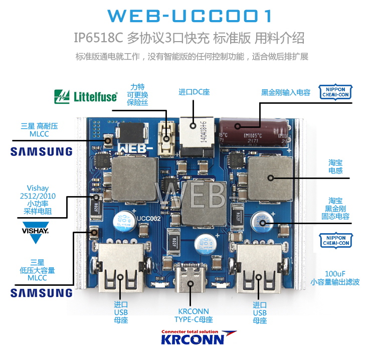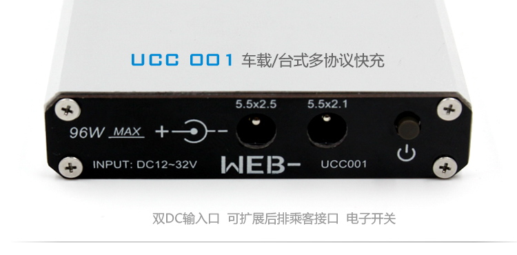 Примечание: интеллектуальная версия двух портов постоянного тока находится в параллельном состоянии, может вставлять только источник питания, не может одновременно вставлять два источника питания!WEB-UCC001 интеллектуальное бортовое зарядное устройство для зарядки автомобиля настольная многопортовая Быстрая зарядка QC23 PD FCP SFC MTKPEUC001 3 Экспресс зарядка автомобиля зарядка-полная Edition-96W кровиФункциональные особенности:1. Электронный переключатель с низким внутренним сопротивлением может быть включен и выключен клавишами.2. Функция задержки запуска с видеорегистратор для путешествия, поддержка 5 секунд задержки запуска/10 секунд задержки запуска * Примечание 13. Функция выбора состояния включения питания, вы можете выбрать режим отключения питания по умолчанию * Примечание 24. Функция обнаружения состояния здоровья батареи с автомобилем * Note 35. Функция автоматического выключения низкого напряжения, когда батарея автомобильного аккумулятора составляет менее 10 в, сигнализация OK lamp, автоматическое выключение через 1 минуту6. Двойной входной порт постоянного тока для поддержки заднего ряда пассажирского сиденья императораИнтерфейс: 2 USB + 1 TYPE-CПоддержка протокола быстрой зарядки:USB порт: Apple, BC1.2, синий и зеленый телефон быстрой зарядки, один добавить, QC2/QC3, FCP/SCP, AFC, SFCP, MTKPE1/2,TYPE-C порт: порт Sup s PD 5 В/7 в/9 В/12 в больше, чем порт USBПримечание 1: функция задержки запуска видеорегистратораКогда некоторые автомобили загорятся, источник питания прикуривателя автоматически отключится, и процесс запуска диктофона под пуском будет прерван.В результате источник питания некоторых дорожных регистраторов не может начать нормально после зажигания.UCC001 обеспечивает 5 секунд/10 секунд опциональную функцию задержки запуска, которая может избежать отключения питания/нестабильности напряжения автомобильного зажигания.Пусть видеорегистратор или другое бортовое оборудование работают нормальноПримечание 2: функция отключения по умолчанию (режим займа)Интерфейс прикуривателя некоторых автомобилей по-прежнему имеет выходное напряжение после того, как двигатель застопорился или ключ был вытащен.Хотя энергопотребление в режиме ожидания UC001 невелико, если ваш автомобиль предоставляется другу или вашей жене/папе, ситуация не известна.Зарядка автомобиля всегда будет потреблять электричество, что легко приведет к нехватке батареи.Итак: если ваш UCC001 используется отправителями, он может быть установлен в режим отключения питания по умолчанию.В это время, только нажатием выключателя на задней части UCC001 автомобиль может быть заряжен, который не будет заряжен с запуском автомобиля.Примечание 3: проверка состояния здоровья автомобильного аккумулятораUCC001 по умолчанию поставляется с трехступенчатой функцией обнаружения напряжения, чтобы помочь вам понять здоровье батареи вашего автомобиляПервая передача: около 12 В, ниже этого напряжения, OK лампа будет мерцать один раз предупреждения.Второй этап: около 11 в, ниже этого напряжения, OK лампа будет мерцать 2 раза, чтобы напомнить.Третья передача: 10 в, ниже этого напряжения, OK лампа будет мигать 3 раза, чтобы напомнить.Когда автомобильный аккумулятор меньше 10 в, это означает, что аккумулятор не используется в течение длительного времени или находится в состоянии старения. UC001 напомнит вам об этом через минуту.Прин