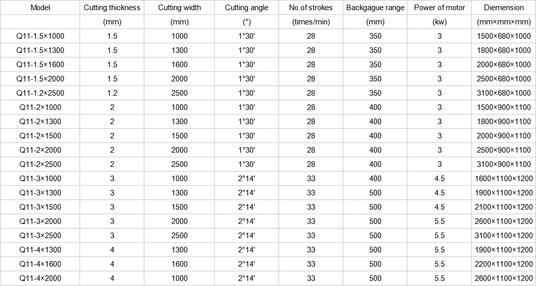 1, электрическая резкаМашина используется для сдвига листового металла в линии, металлические материалы должны быть прочность на растяжение менее 450 Н/мм2, неметаллический материал, включая резину, пластмассы, при разрезании температуры горячей пластины должна быть ниже 50 °C, машина может производить только прерывистый сдвиг при полной нагрузке, если прочность на растяжение выше, толщина сдвига должна быть уменьшена.