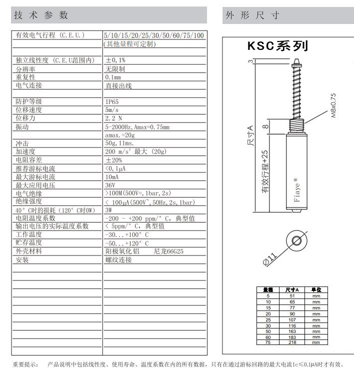 Особенности: · Длительный срок службы, до 5 миллионов раз работы Отличная линейность, до 0.25% Отскок измерения Установите наконечник шкива для устранения бокового напряжения Рабочая скорость до 5 м/с Отличная устойчивость к ударам и вибрациям Прямой кабель Эффективные Электрические путешествия (CEU) 51015/2025130/5060/75/100 другие диапазоны могут быть настроены Независимая линейность внутри CE диапазон): ± 0,25 ~ 0.5% Разрешение: неограниченна Повторяемость: лучше, чем 0,1 м Электрическое соединение: прямая розетка Уровень защиты: IP65 Скорость перемещения: Im/s Сила перемещения: около 2N Вибрация: 5-2000 Гц Amax = 0,75 мм amax = 20g Воздействие: 50 г, 11 мс Ускорение: максимум 200 м/с (20 г) Допуск на сопротивление: ± 20% Рекомендуемый ток курсора: <0.1μA "Максимальный ток курсора: 10A "Максимальное напряжение: 36 В Электрическая изоляция: >100 м (500 В =, Ibar, 2s) 40 ° C потеря: 3 Вт Прочность изоляции: <100μA Температурный коэффициент сопротивления: -200-+ 200ppm/°C, типичное значение Фактический температурный коэффициент выходного напряжения: <5ppm/C, типичный Рабочая температура: -30 .. 85 °C Температура хранения: нормальная температура Материал корпуса: анодированный алюминиевый нейлон 66025 Установка: резьбовое соединение Место происхождения: материковый Китай Бренд: fiay E Модель: ККС Рабочее напряжение: 5 В Рабочий ток: 0.02A Категория выходной модели: аналоговый датчик Подходящая сцена: измерение смещения Вес: 20 г датчик Категория: датчики перемещения Материал: металл