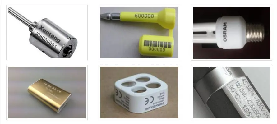 Волоконно-лазерная маркировочная машина используется дляМаркировка логотипа, серийного номера, штрих-кода и других красивых узоров на любых металлических материалах, таких как нержавеющая сталь, титаниум, латунь, золото, серебро, алюминий и много инженерных пластмассовых изделий, таких как мобильное покрытие и зарядное устройство, потребление электроники и т. Д.