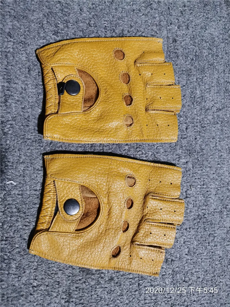 Мужские перчатки из натуральной кожи, короткие перчатки для езды на велосипеде, перчатки из овчины с сенсорным экраном, мужские перчатки без пальцев