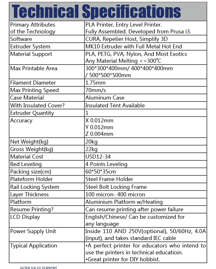 Гарантийный срок составляет один год для материнской платы с даты доставки, другие части 3D-принтера-90 дней. У нас есть отличная R & D команда и обеспечивает хорошее послепродажное обслуживание, если возникнут какие-либо проблемы во время процессии, вы можете связаться с нами для помощи.