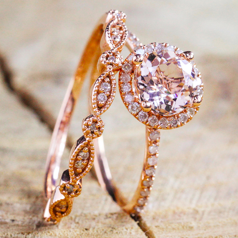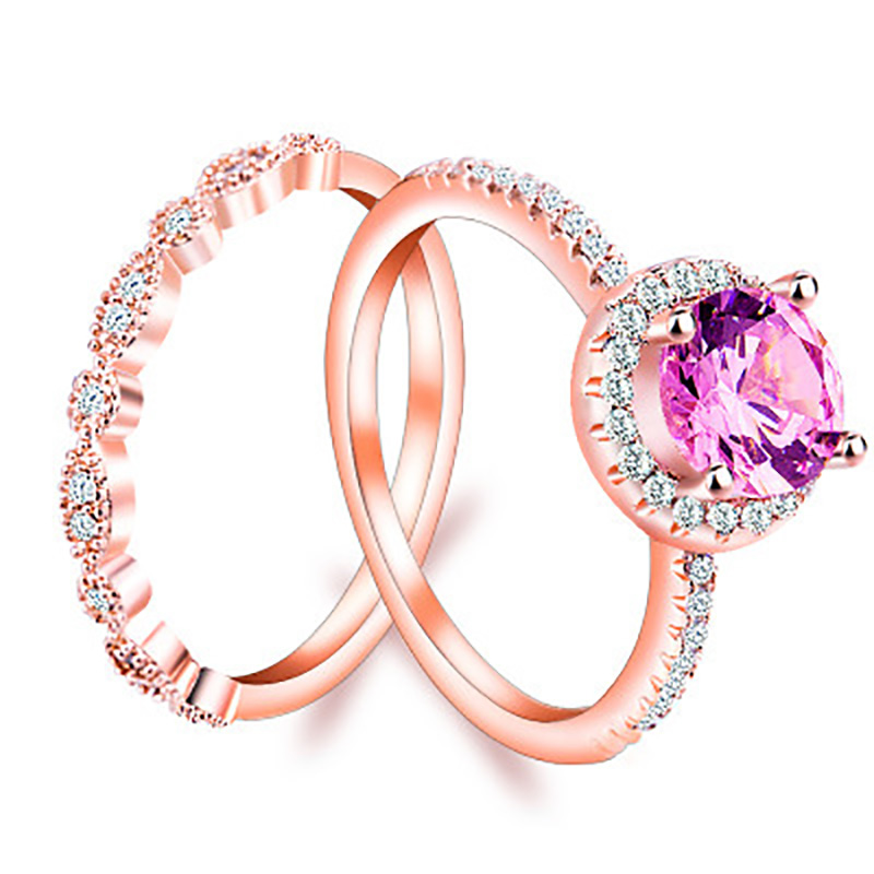 2/шт набор колец для женщин материал с розовым золотом циркониевые кольца на