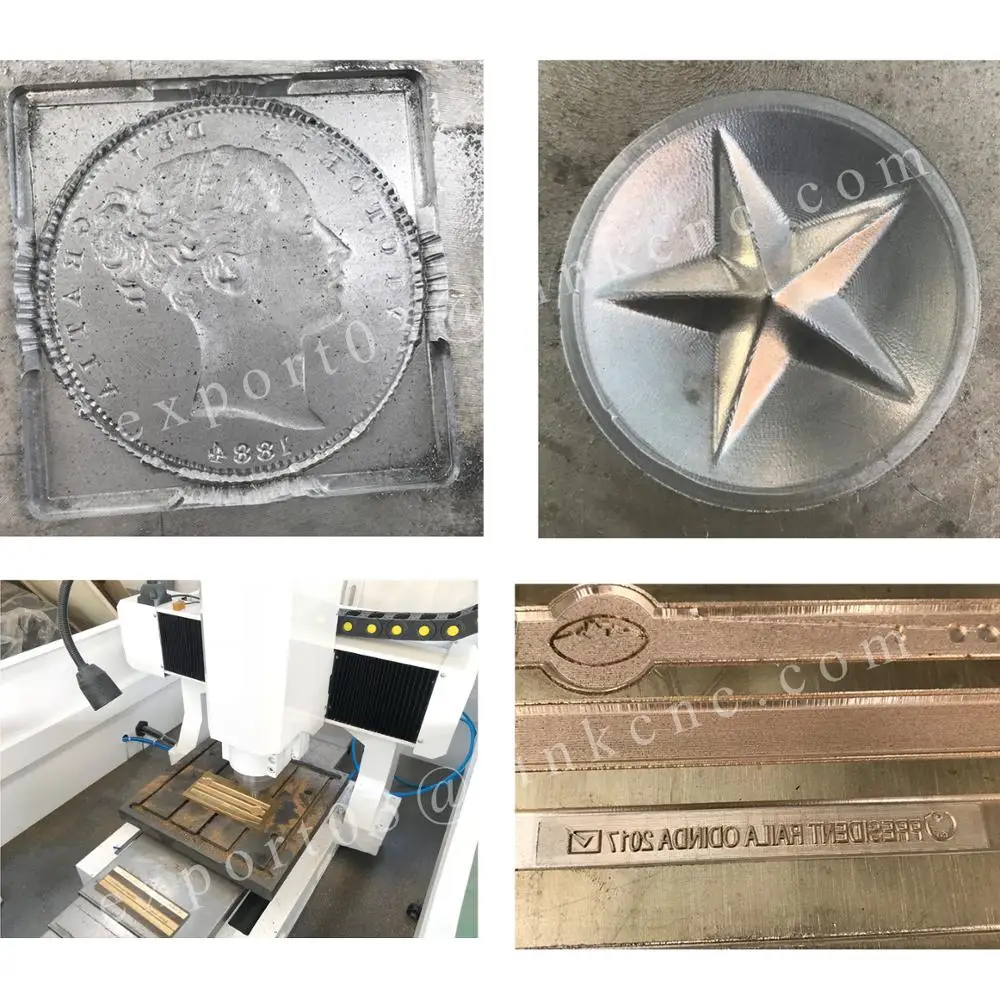 Формовочная промышленность: Пресс-формы для резьбы, электроды, промышленные модели, пресс-форма для резьбы и фрезерного станка могут лепить различные рельефы, резьба по изображению, резьба по передаче, резьбы по самолетам, резки, мытья дна и другие эффекты. в форме, обуви, торговой марке, коже, производстве часов, производстве монет, аппаратной промышленности, особенно в необходимости высокоскоростной обработки металла, Резные и фрезерные станки имеют сильные преимущества.