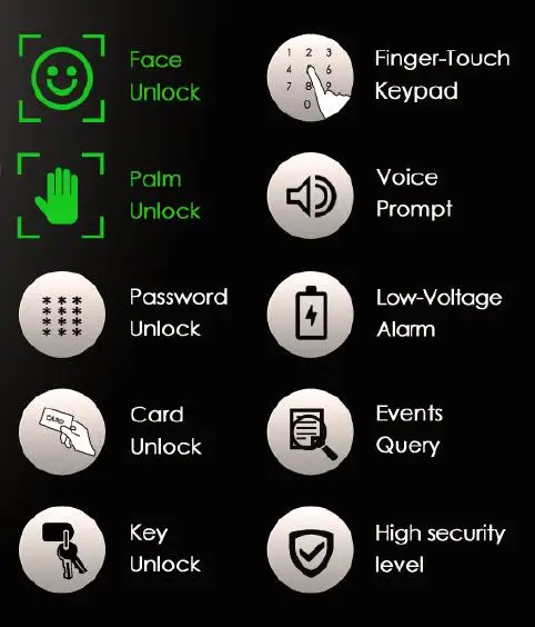 Режим разблокировки | Лицо, ладонь, пароль, IC карта, механический ключ |