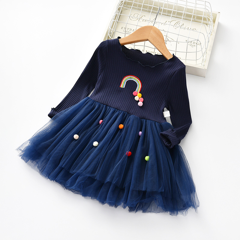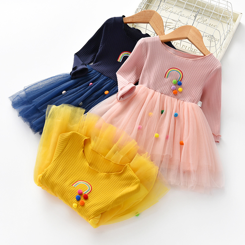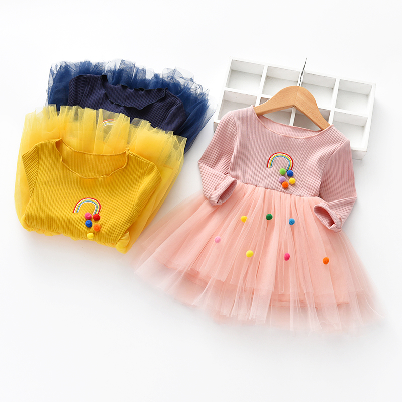 Платье для девочек 2018 весна и осень новая Корейская версия радужного платья