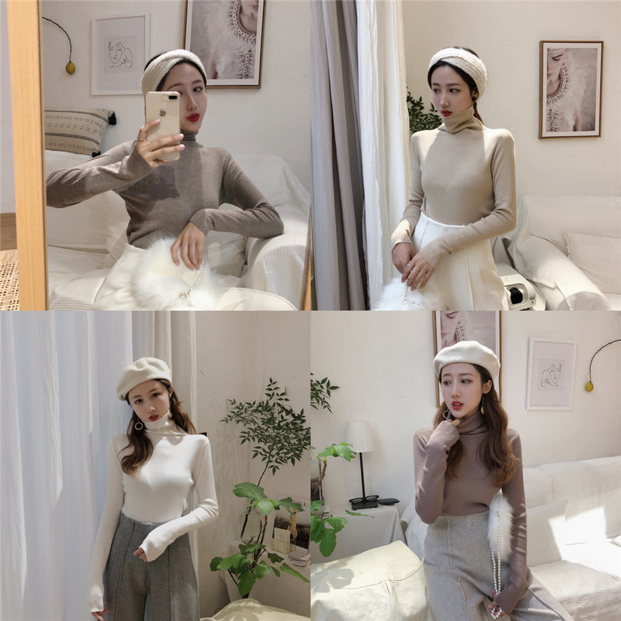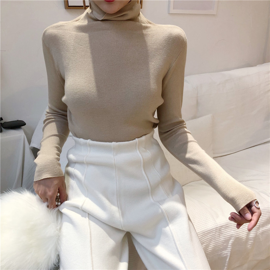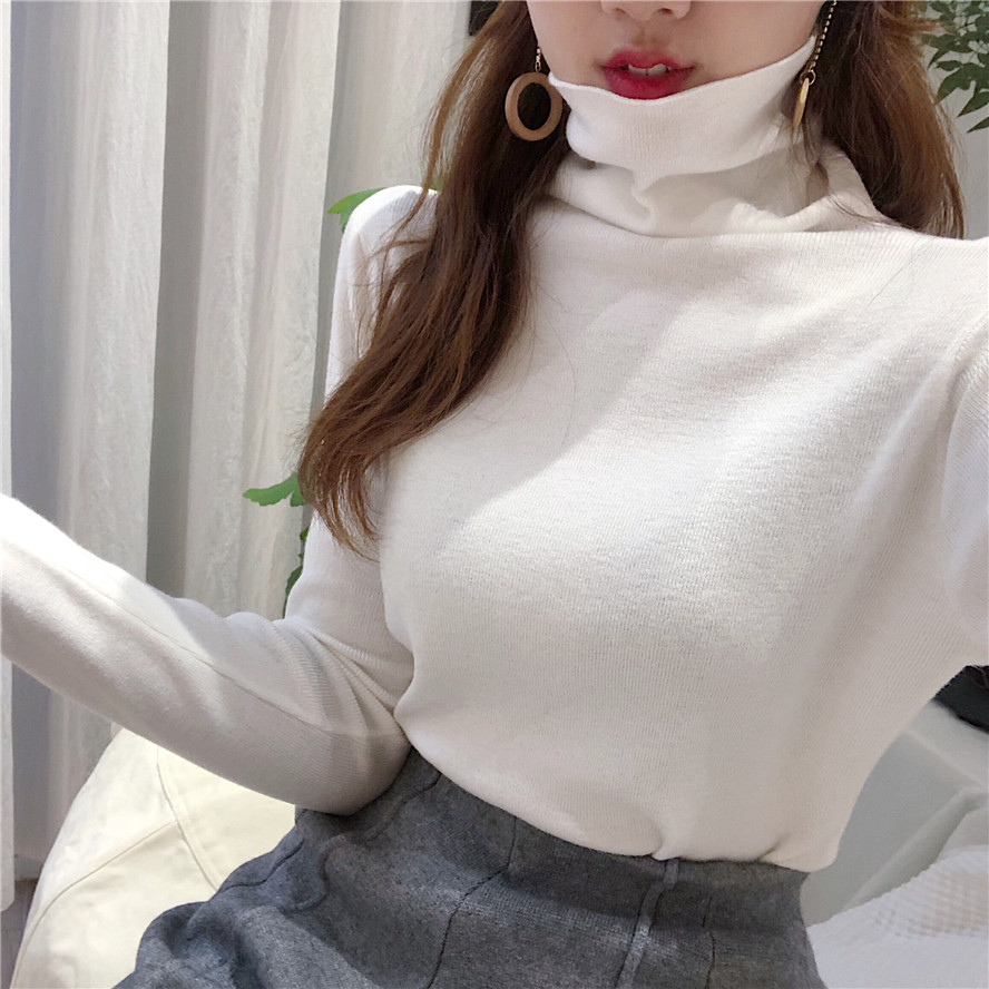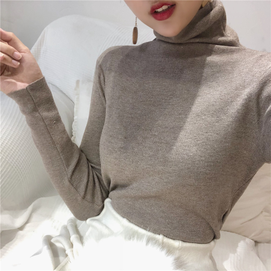 4 цвета, осенняя Женская водолазка с длинным рукавом, тонкий вязаный тонкий свитер, топы, женские корейские облегающие повседневные рубашки